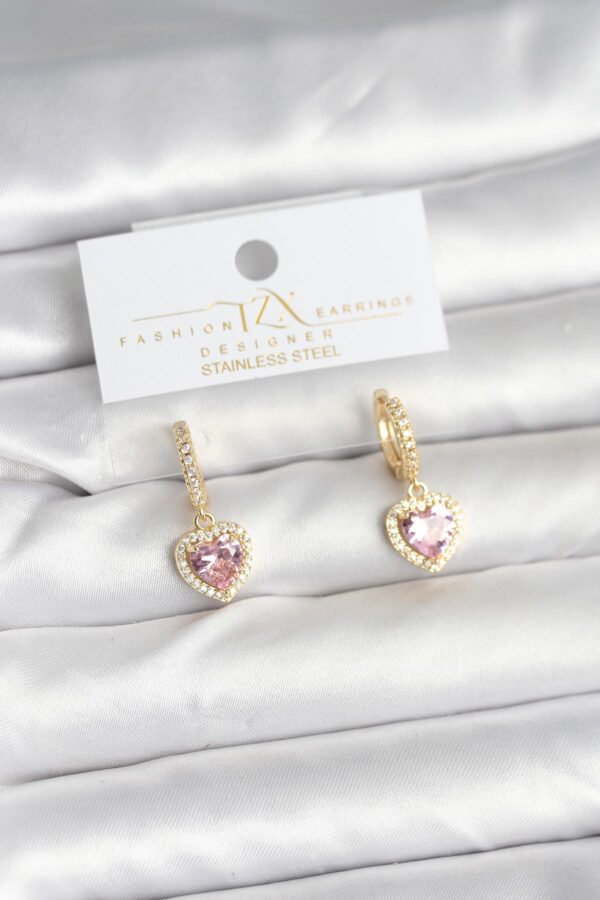 Tegan Pirinç Gold Pembe Renk Zirkon Taşlı Kalp Model Kadın Küpe TG27BKP11393