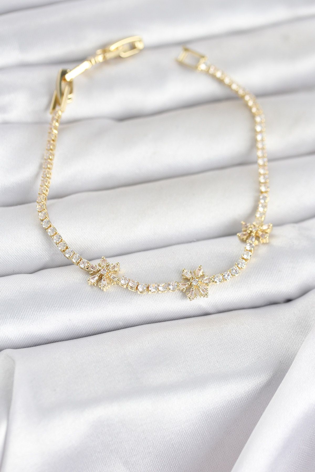 Tegan Pirinç Gold Renk Çiçek Model Zirkon Taşlı Su Yolu Kadın Bileklik TG27BB8373