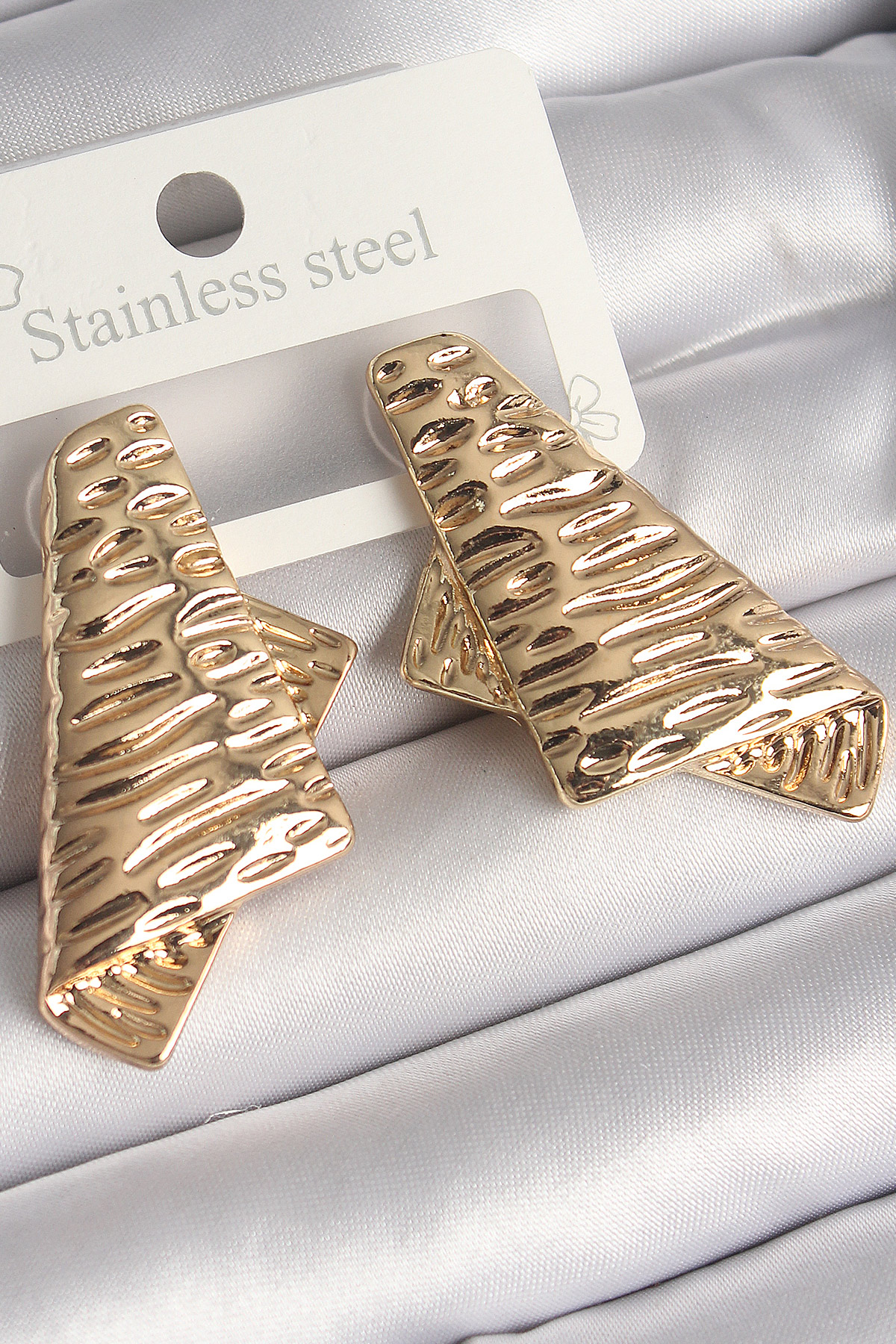 Tegan Pirinç Gold Renk İşleme Detaylı Katlanmış Kare Plaka Model Kadın Küpe TG27BKP10261