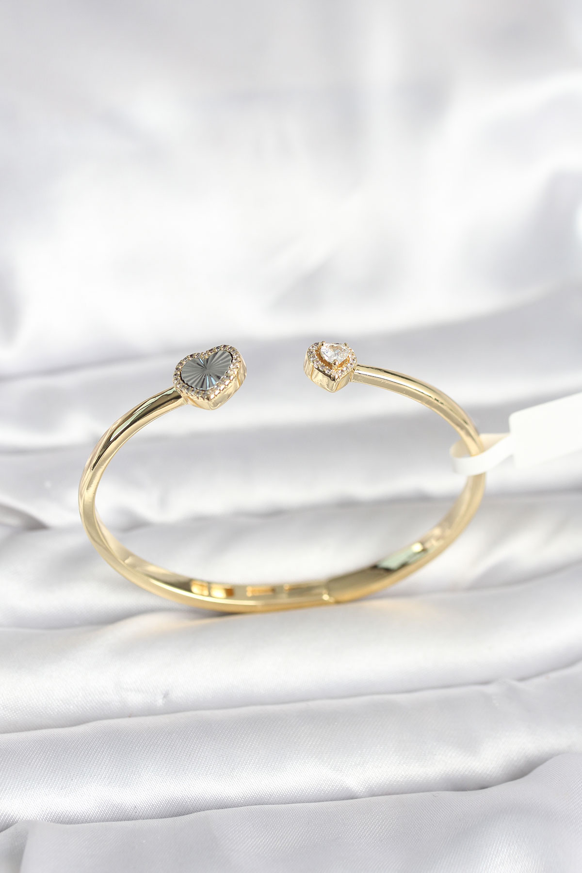 Tegan Pirinç Gold Renk Kalpli Model Kadın Kelepçe Bileklik TG27BB8089