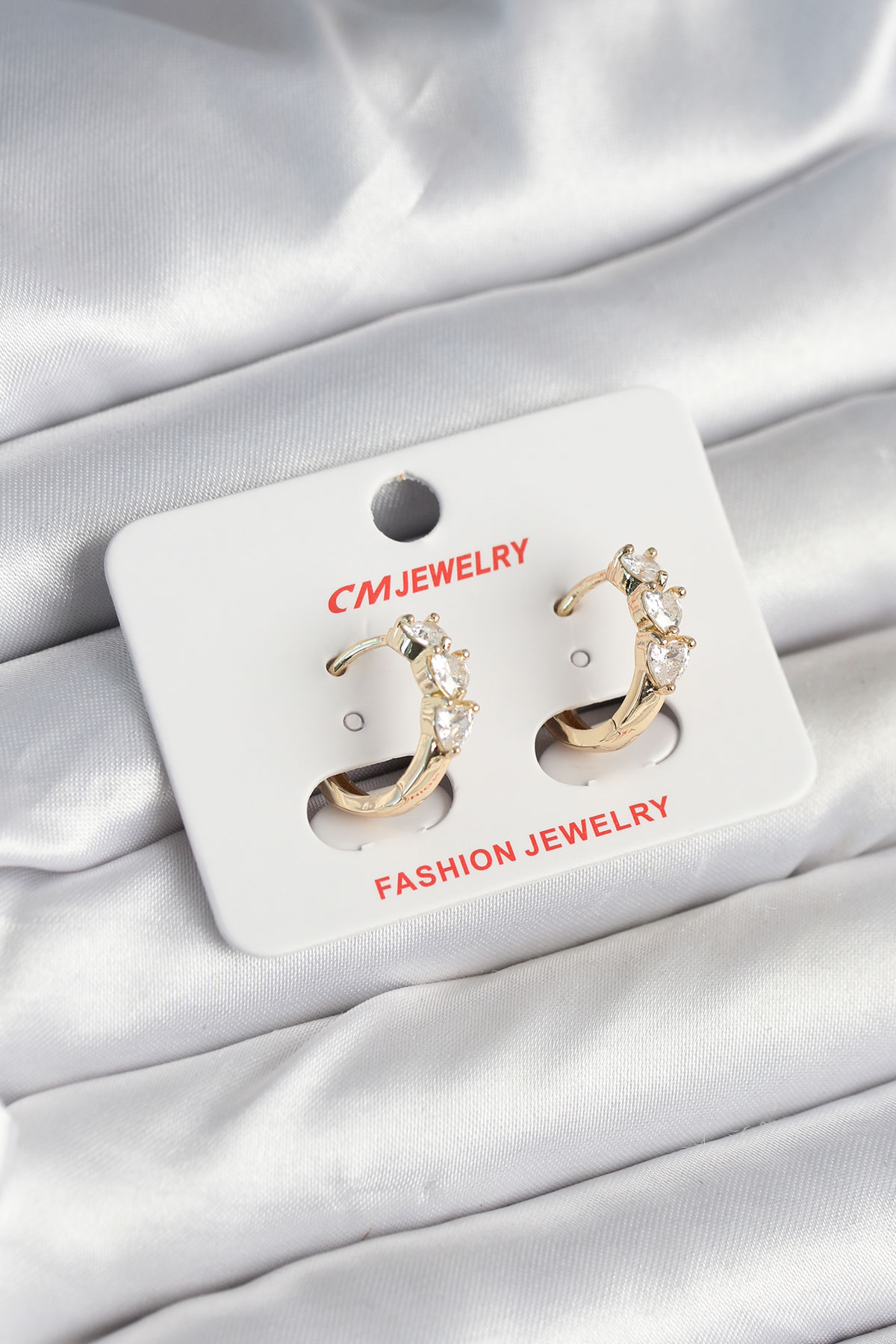Tegan Pirinç Gold Renk Kalpli Zirkon Taşlı Kadın Küpe TG27BKP11246