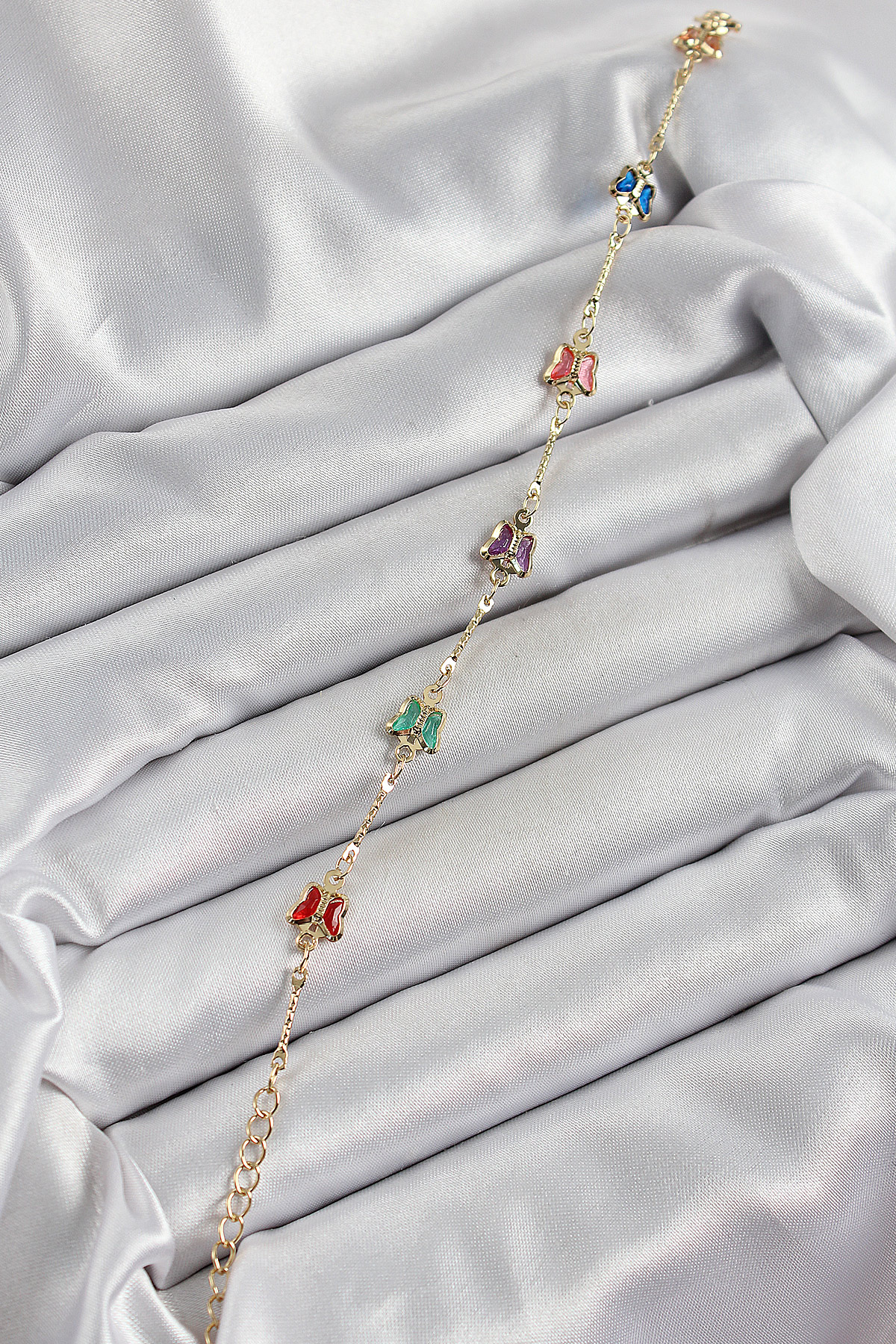 Tegan Pirinç Gold Renk Karışık Renk Kelebek Zirkon Taşlı Kadın Bileklik TG27BB7057