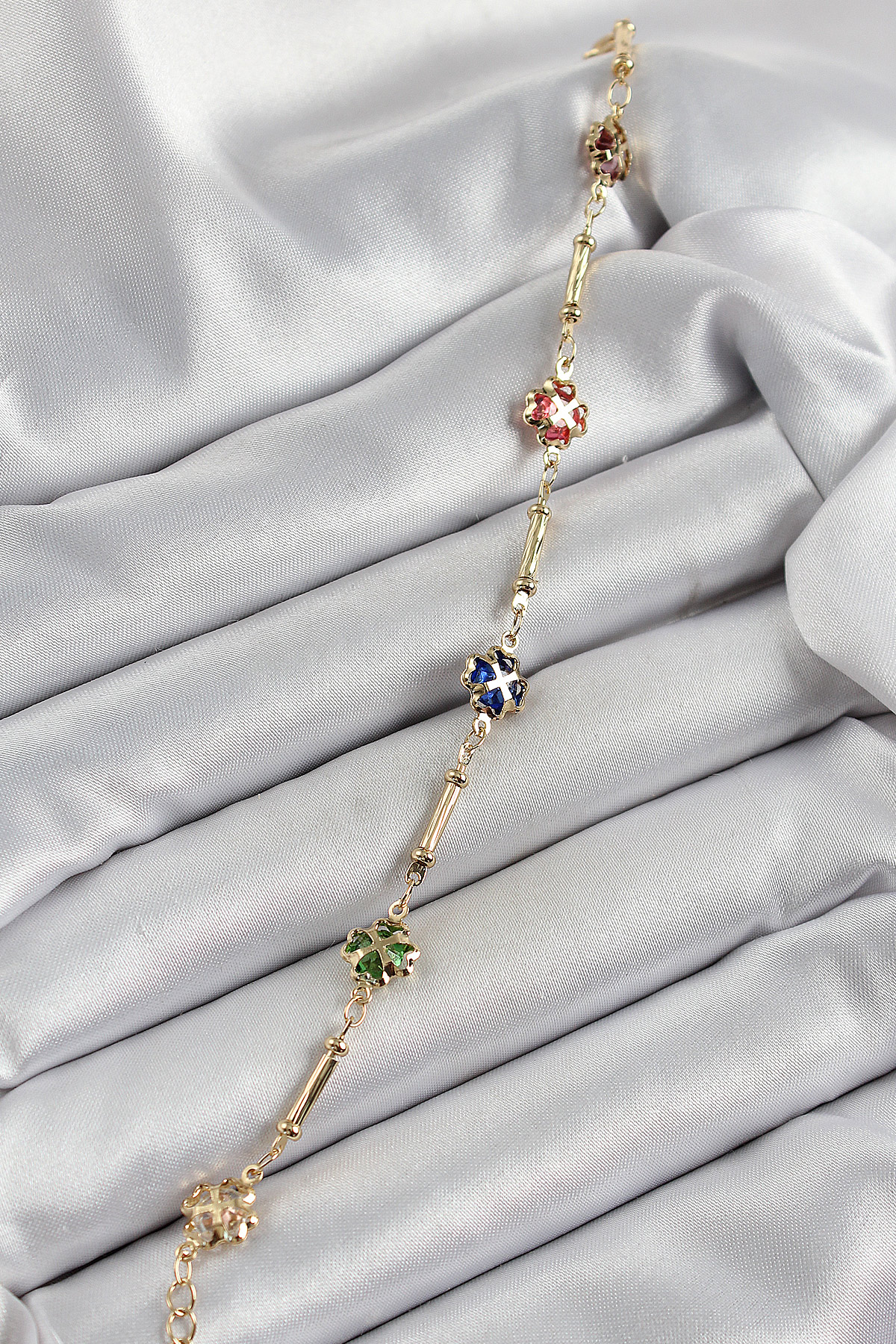 Tegan Pirinç Gold Renk Karışık Renk Yonca Zirkon Taşlı Kadın Bileklik TG27BB7056