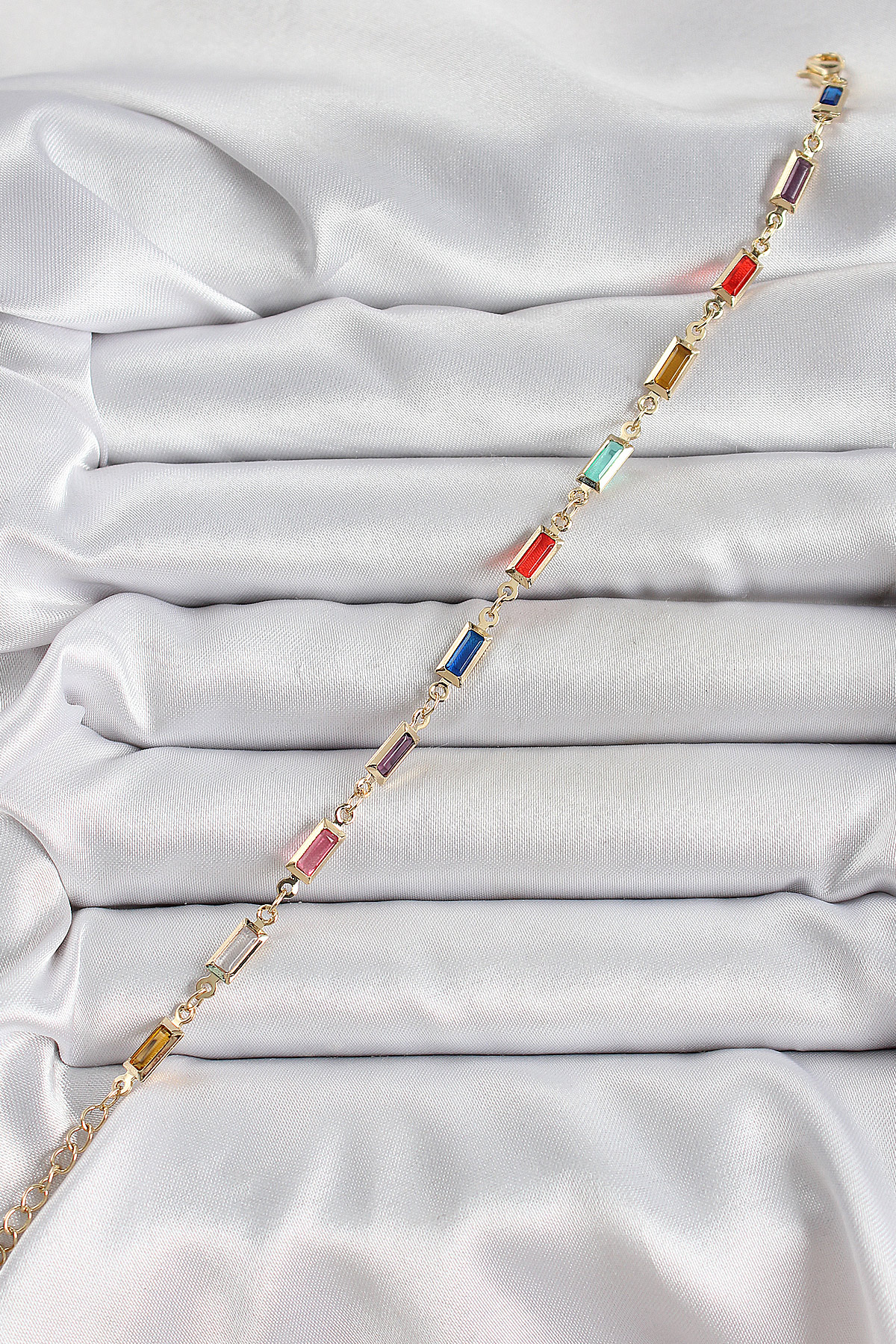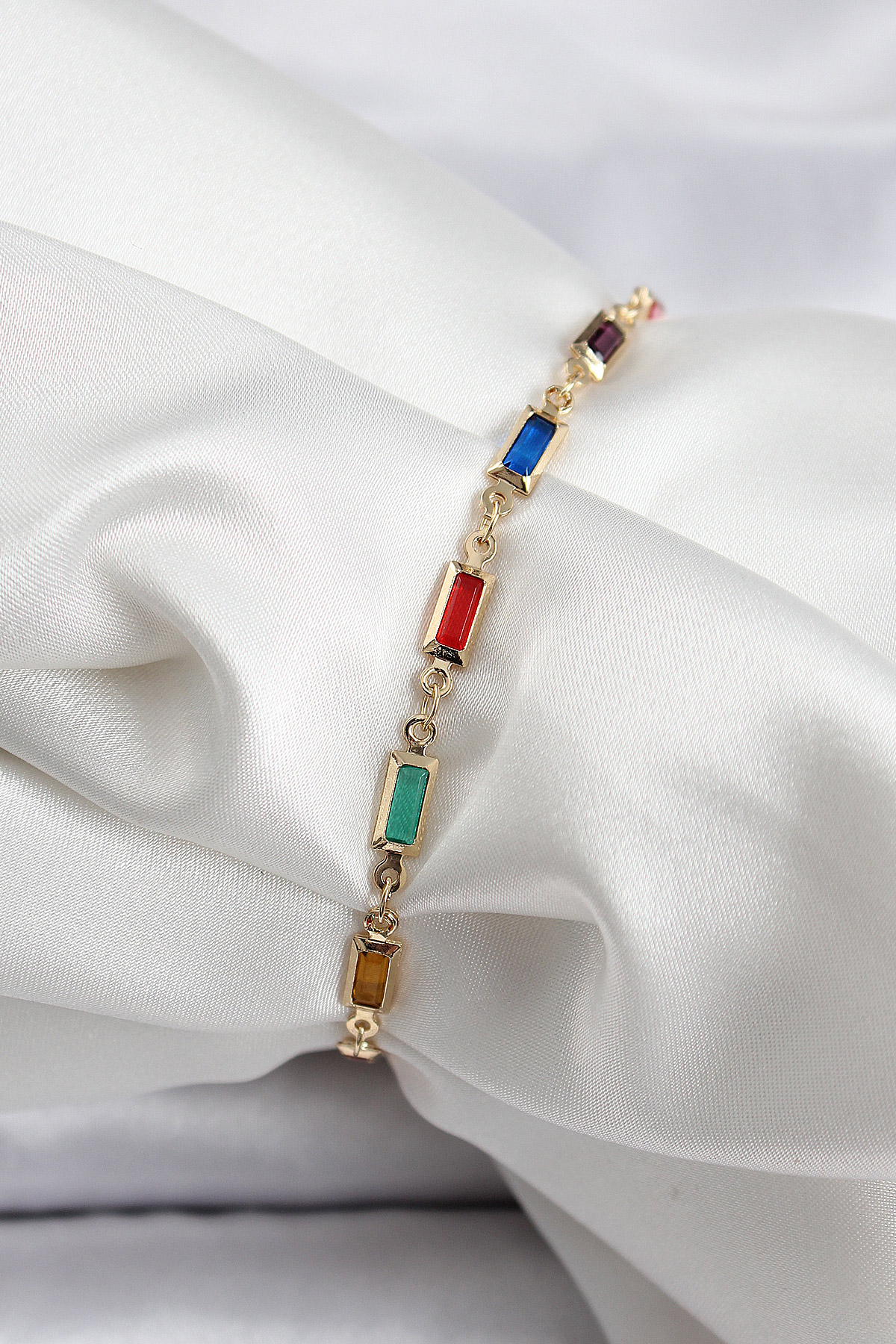Tegan Pirinç Gold Renk Karışık Renkli Kare Zirkon Taşlı Kadın Bileklik TG27BB7040