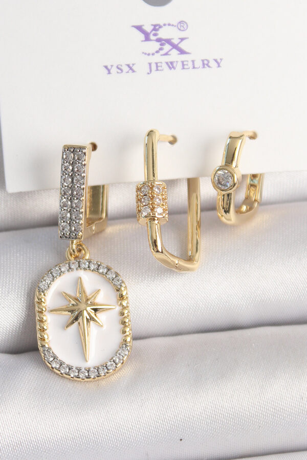 Tegan Pirinç Gold Renk Sallantı Zirkon Taş İşlmeli Yıldız Portre Model 3’Lü Kadın Kombin Küpe TG27BKP10452