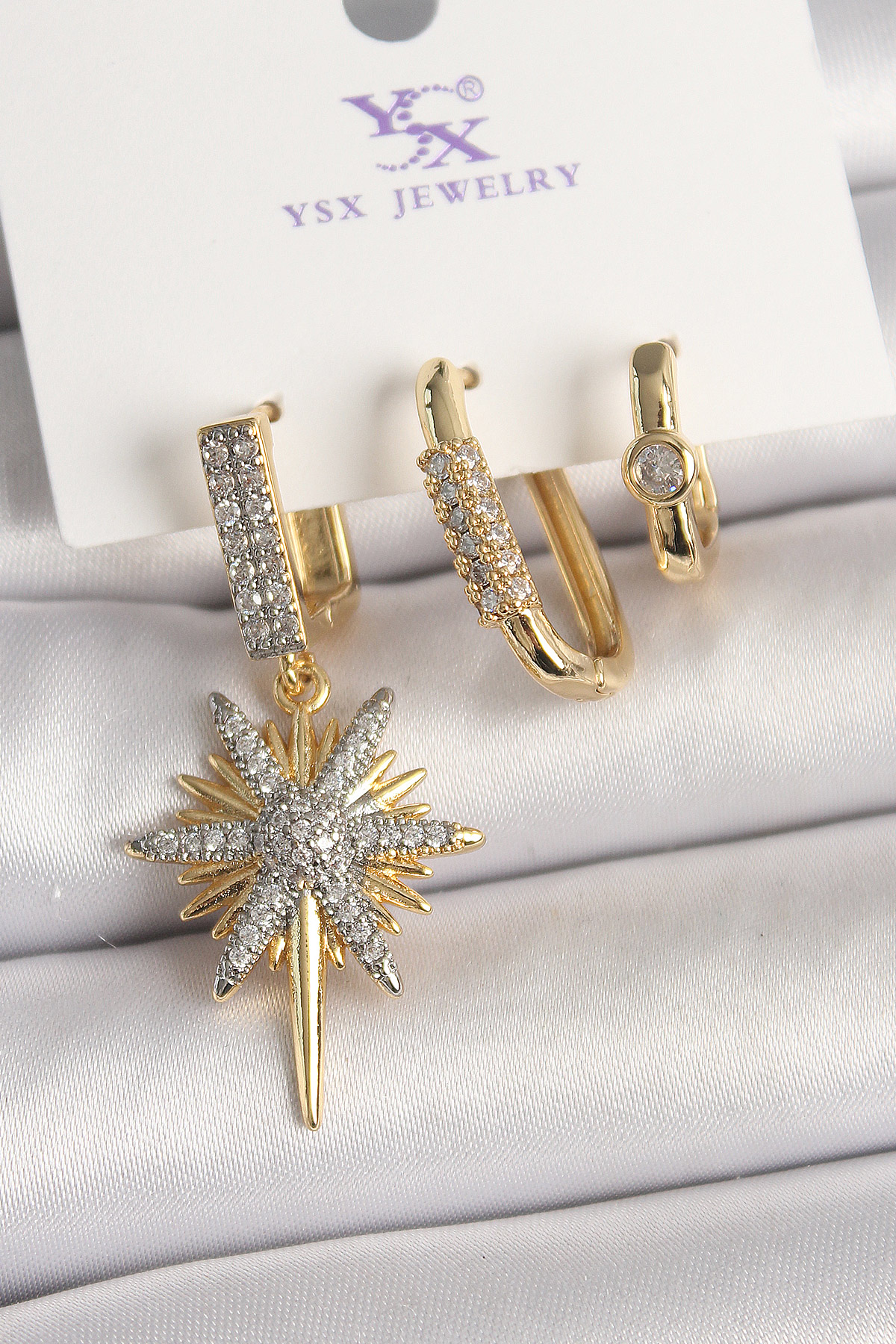 Tegan Pirinç Gold Renk Sallantı Zirkon Taşlı Kutup Yıldız Model 3’Lü Kadın Kombin Küpe TG27BKP10473