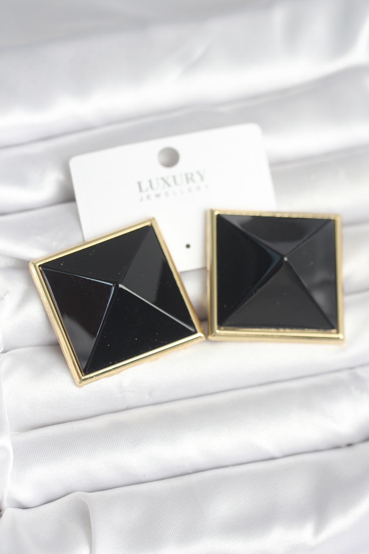 Tegan Pirinç Gold Renk Siyah Piramit Model Kadın Küpe TG27BKP11385