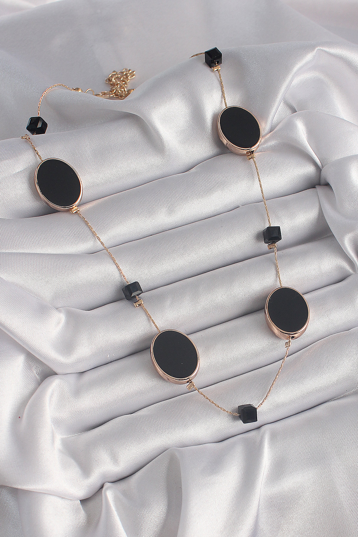 Tegan Pirinç Gold Renk Siyah Renk Oval Siyah Küp Detay Kadın Kolye TG27BKO9625