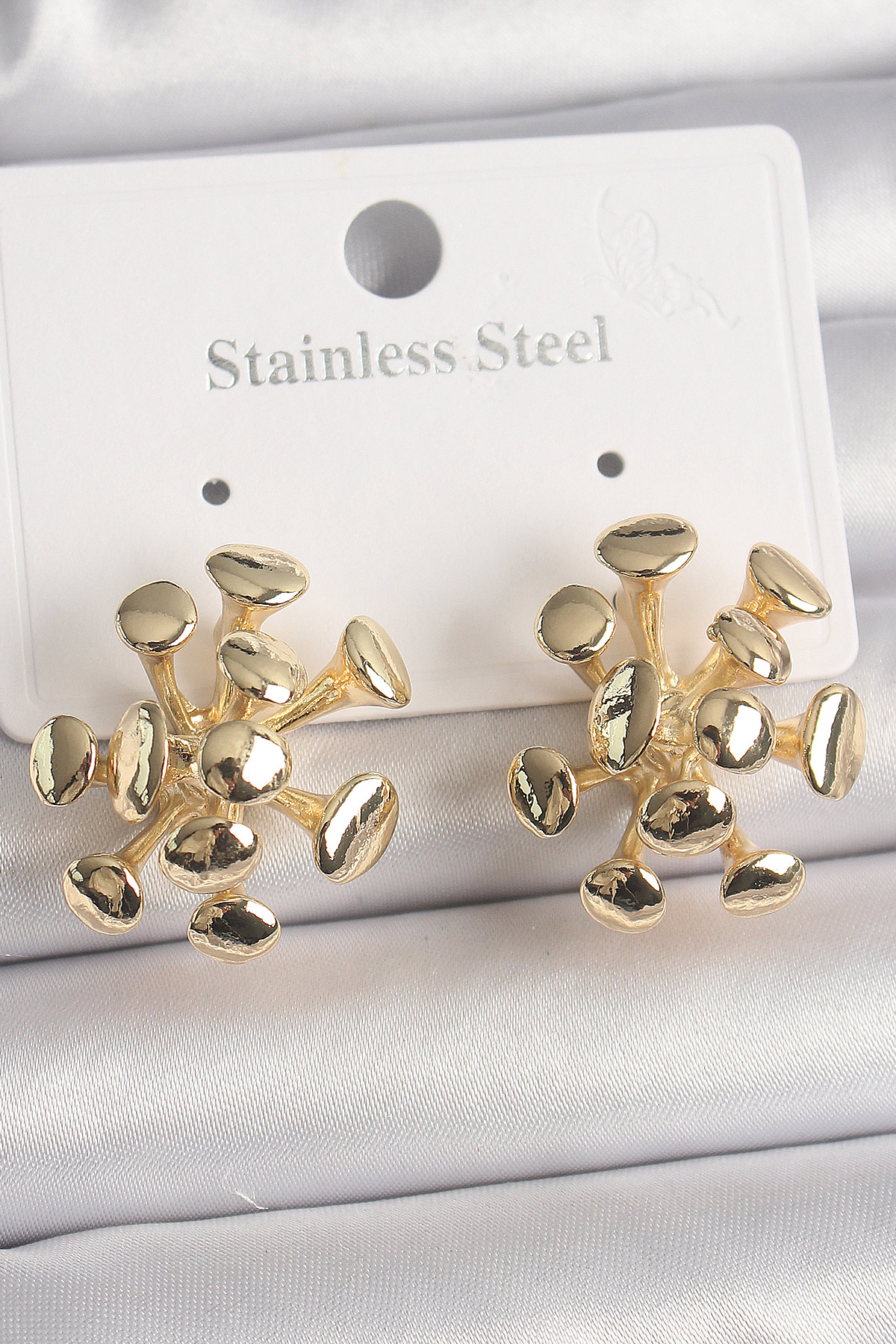 Tegan Pirinç Gold Renk Virüs Figür Model Kadın Küpe TG27BKP10070