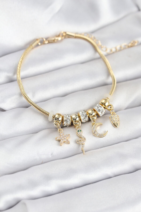 Tegan Pirinç Gold Renk Yılan Charmlı Kadın Bileklik TG27BB8183