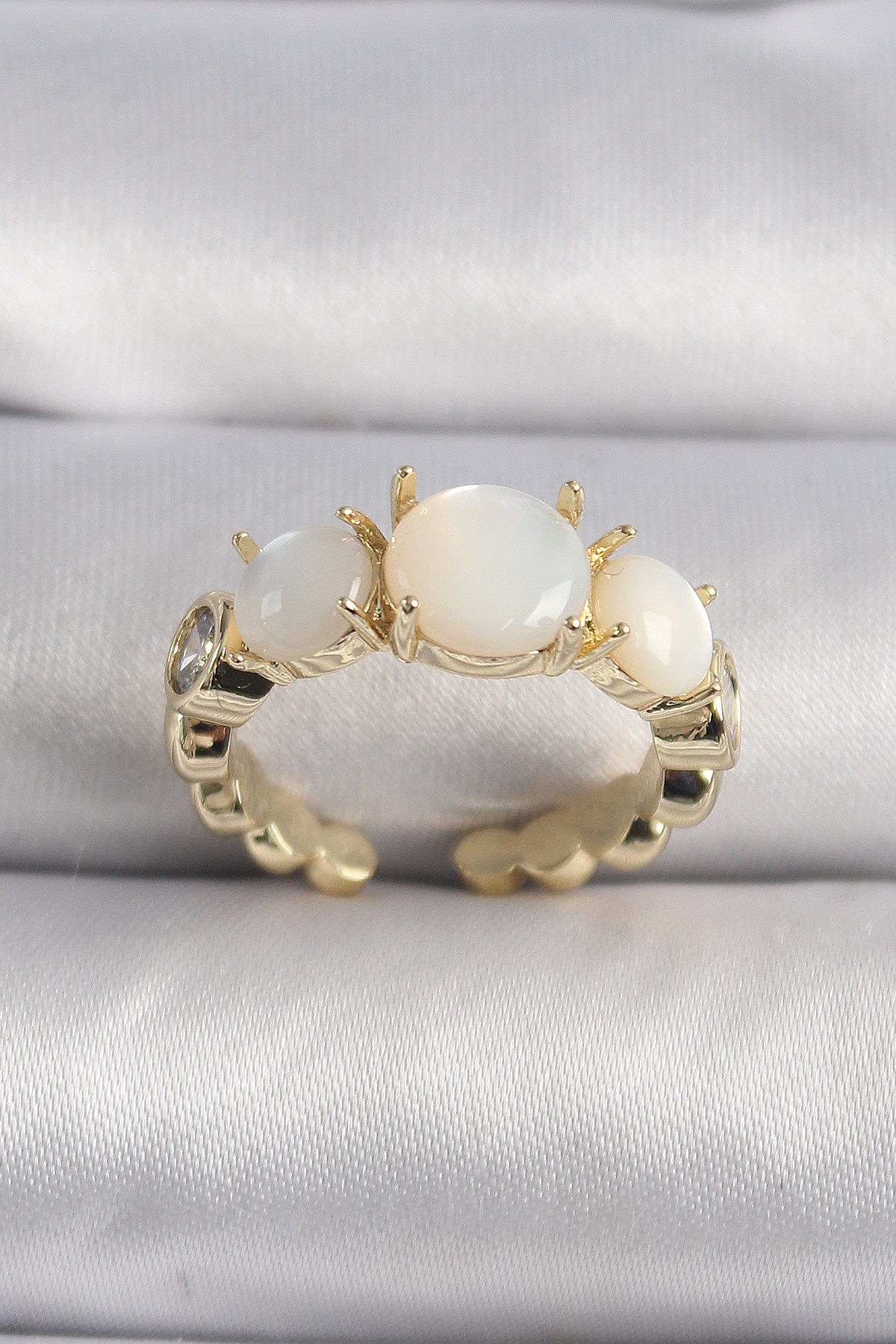 Tegan Pirinç Gold Renk Zirkon Taş Detaylı Beyaz Sedefli VIP Seri Kadın Yüzük TG27BYK3504