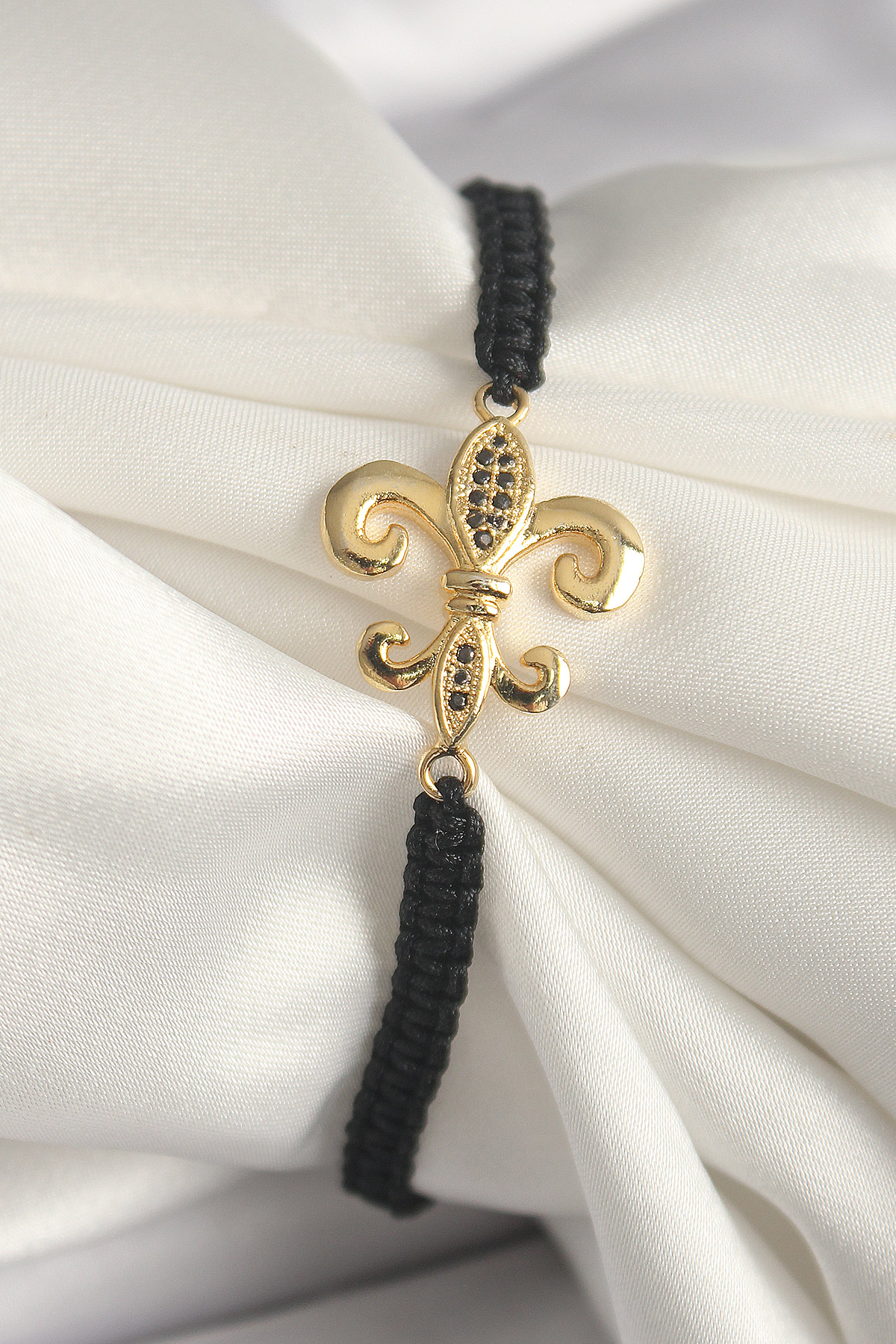 Tegan Pirinç Gold Renk Zirkon Taş İşlemeli Zambak Figür Asansörlü Makrome Model Kadın Bileklik TG27BB6804