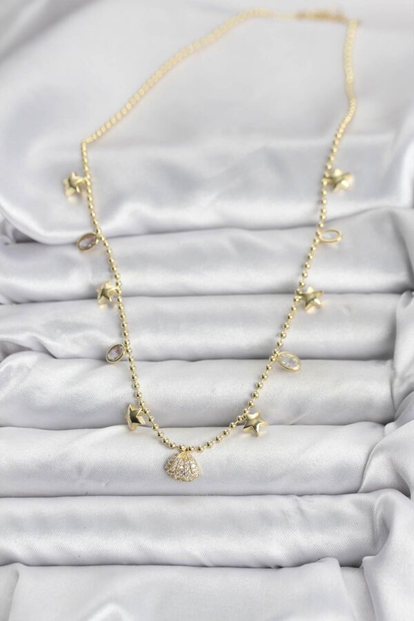 Tegan Pirinç Gold Renk Zirkon Taşlı Deniz Kabuğu Model Kadın Kolye TG27BKO10646