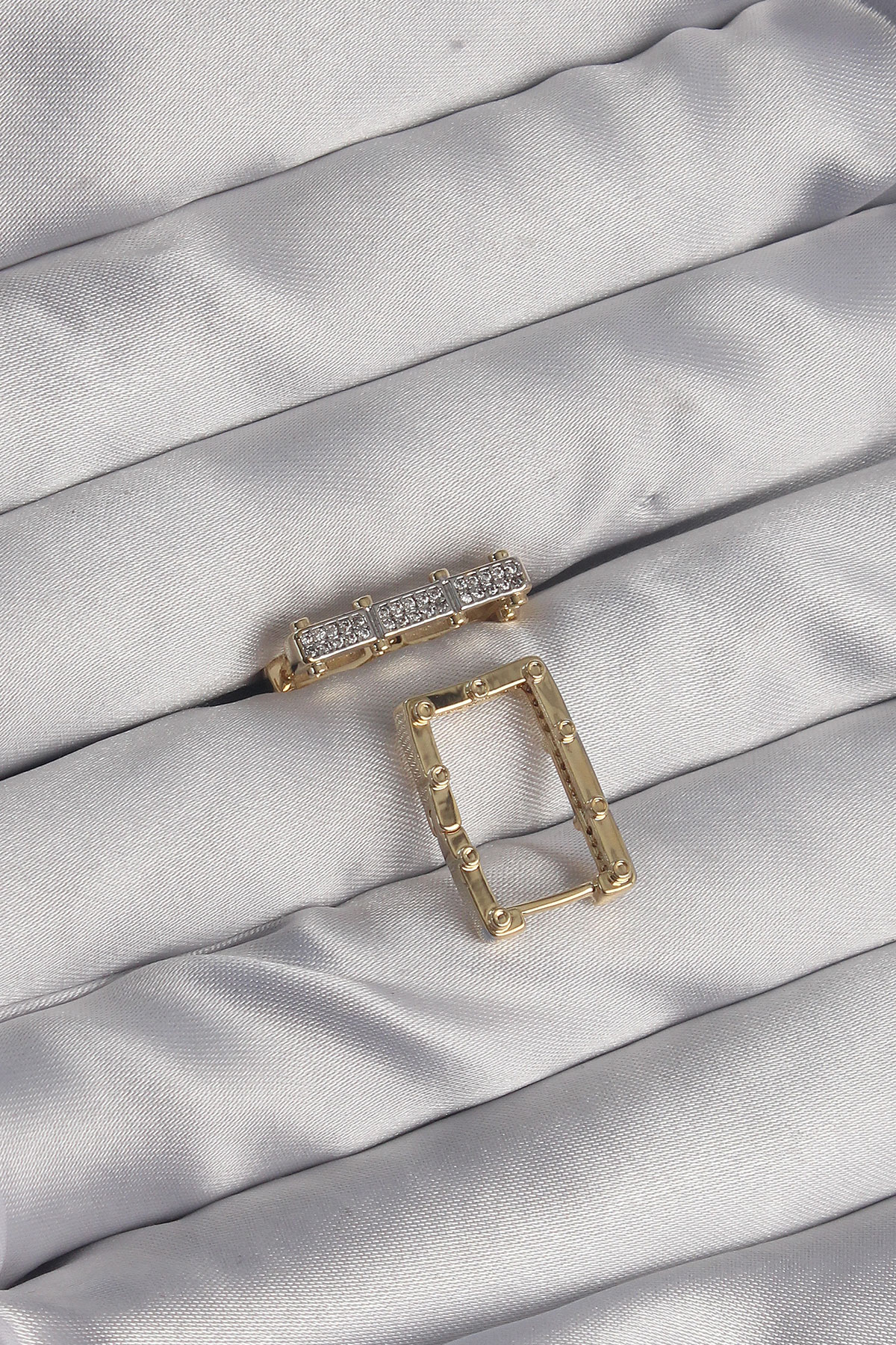 Tegan Pirinç Gold Renk Zirkon Taşlı Dikdörtgen Model Seranay Küpe TG27BKP9117