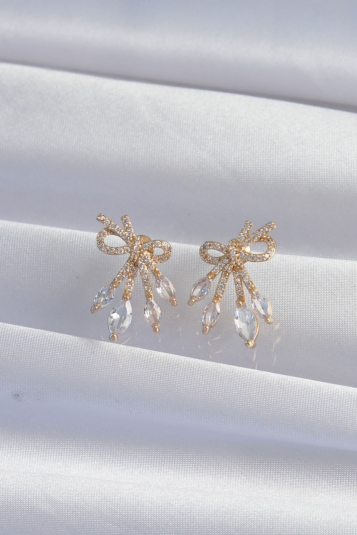 Tegan Pirinç Gold Renk Zirkon Taşlı Fiyonk Küpe TG27BKP9293