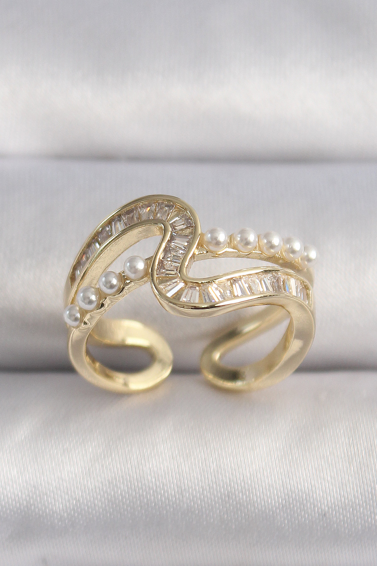 Tegan Pirinç Gold Renk Zirkon Taşlı İnci Detay VIP Seri Kadın Yüzük TG27BYK3520