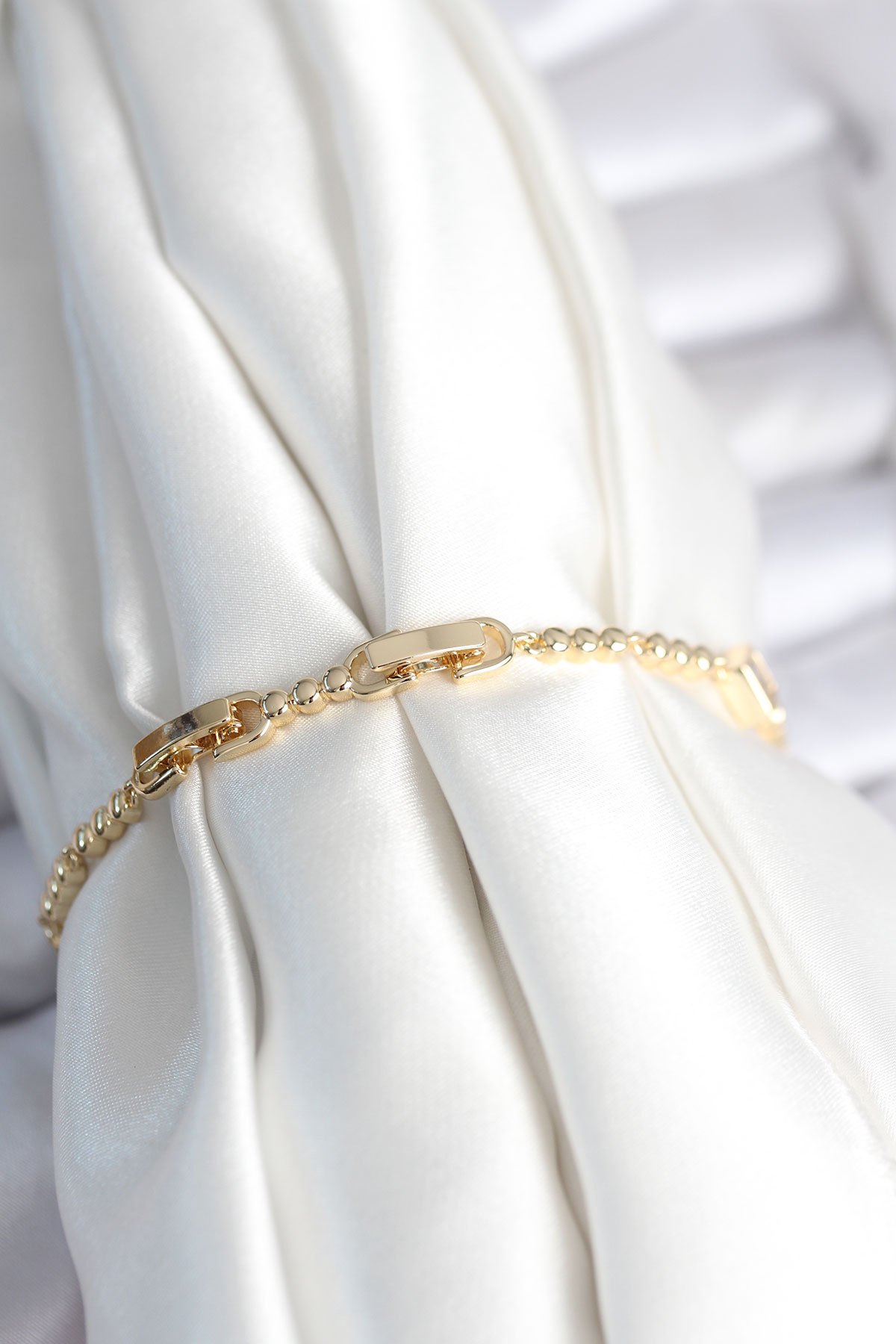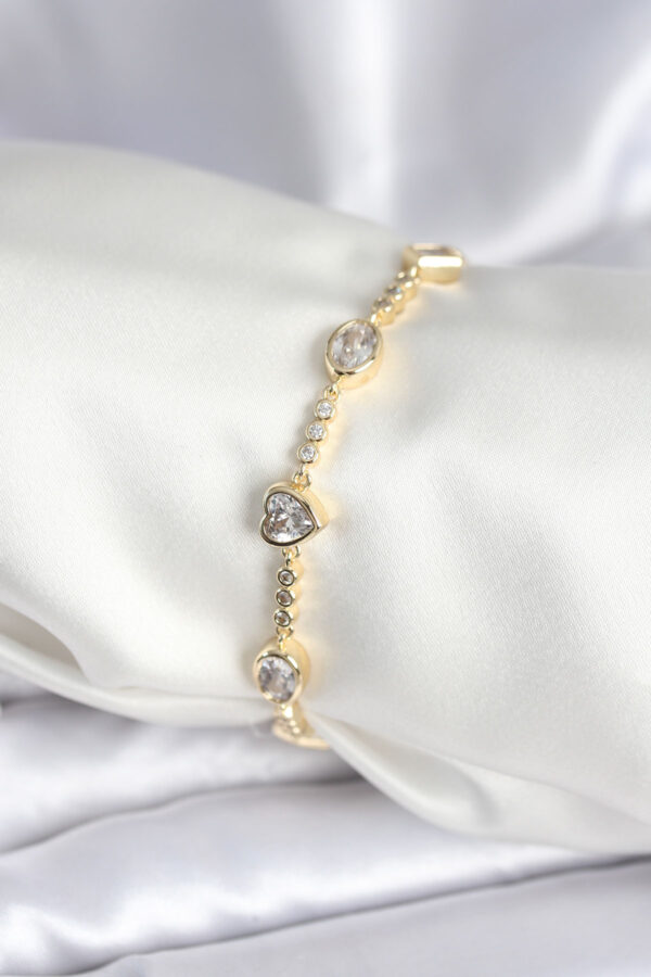 Tegan Pirinç Gold Renk Zirkon Taşlı Kalpli Model Kadın Bileklik TG27BB7967