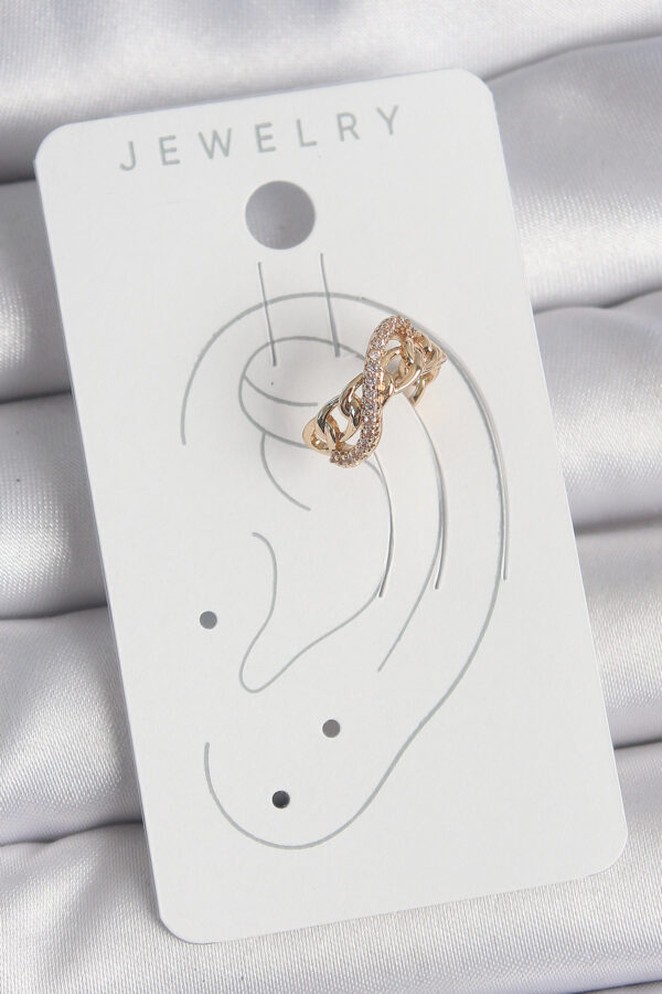 Tegan Pirinç Gold Renk Zirkon Taşlı Sonsuzluk Zincir Model Kadın Kıkırdak Küpe TG27BKP10575