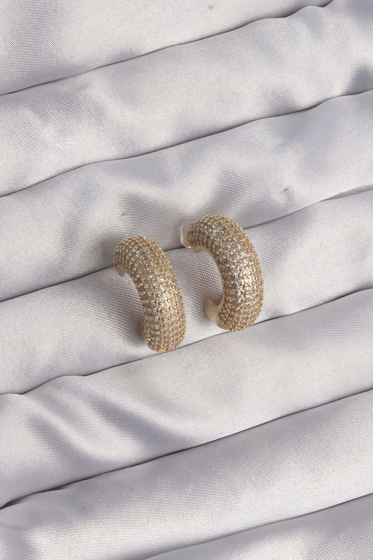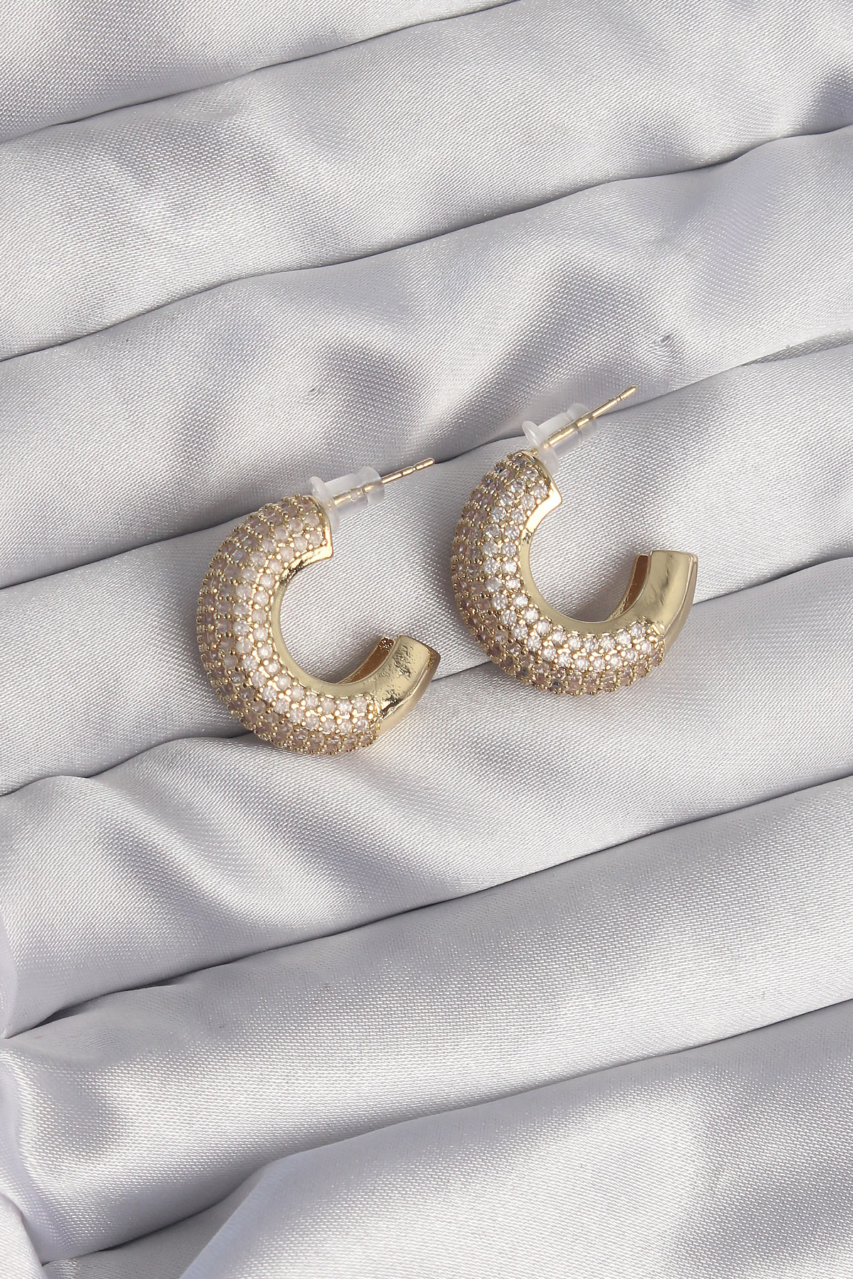 Tegan Pirinç Gold Renk Zirkon Taşlı Yarım Halka Küpe TG27BKP9113