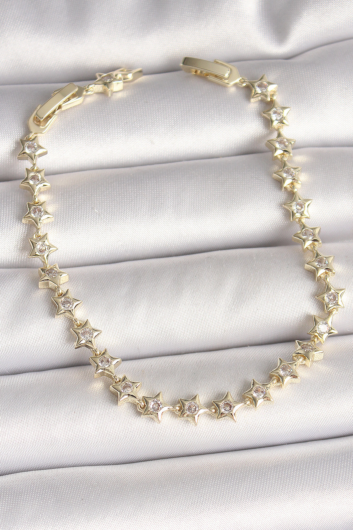 Tegan Pirinç Gold Renk Zirkon Taşlı Yıldız Model VIP Seri Kadın Bileklik TG27BB6880