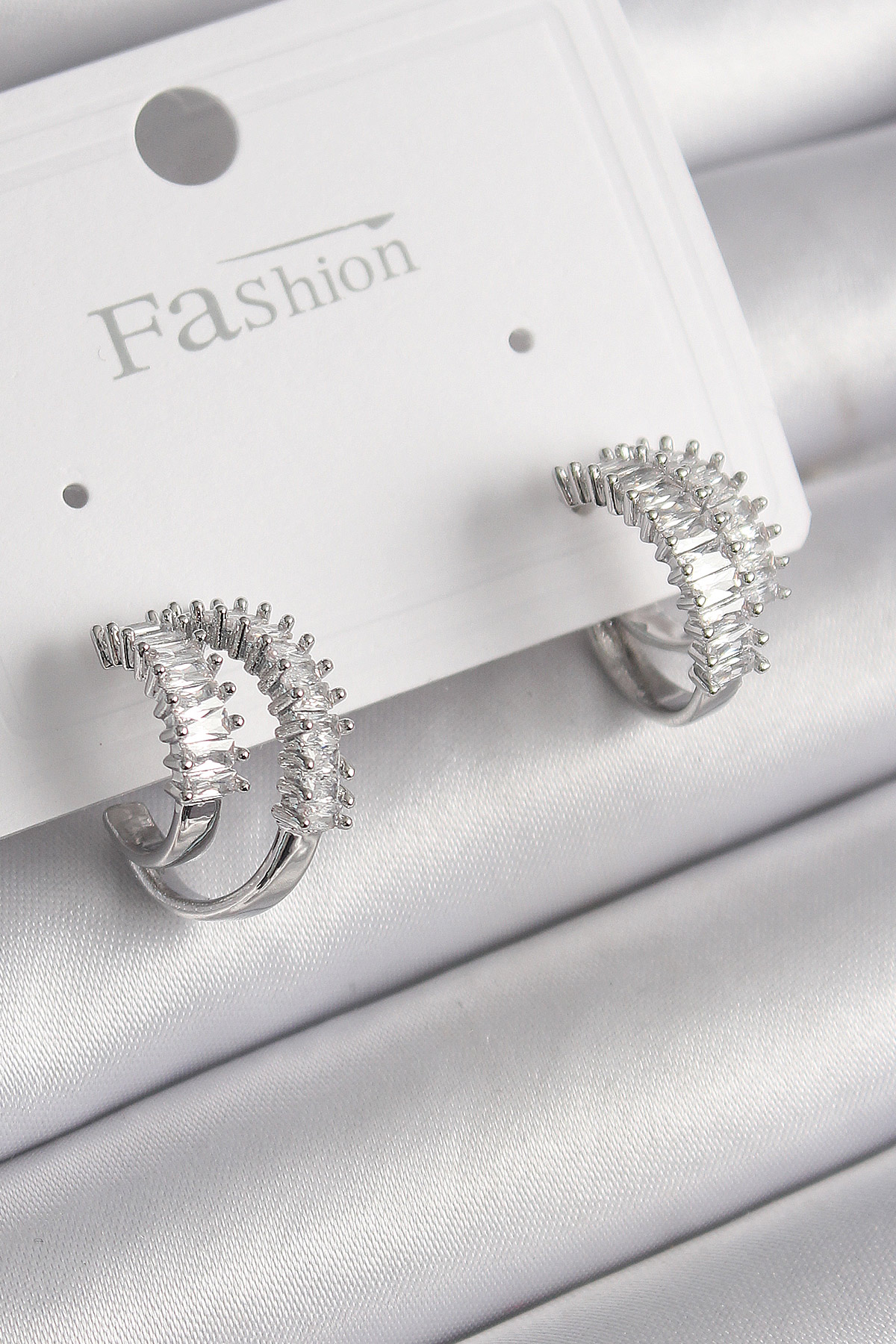 Tegan Pirinç Gümüş Renk 2’Li Zirkon Taşlı Halka Model Kadın Küpe TG27BKP9976