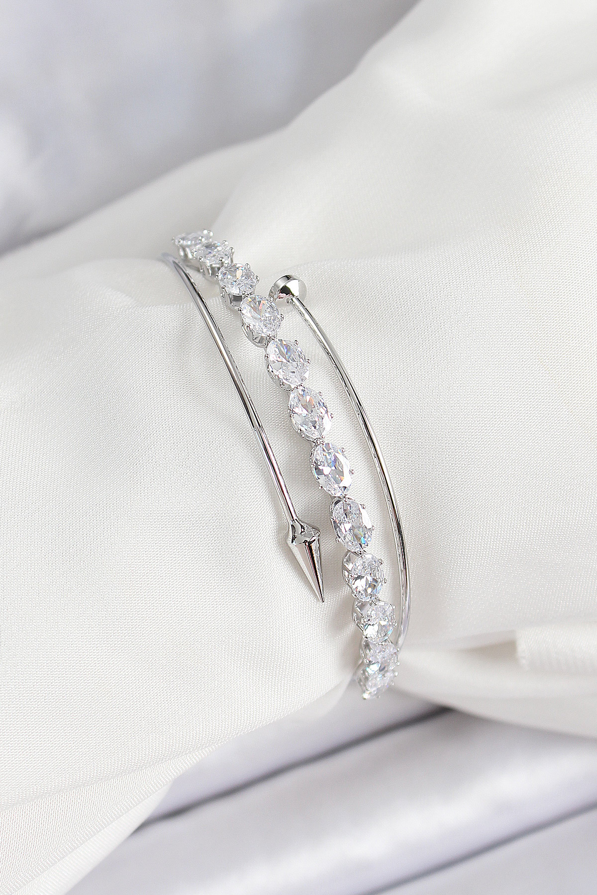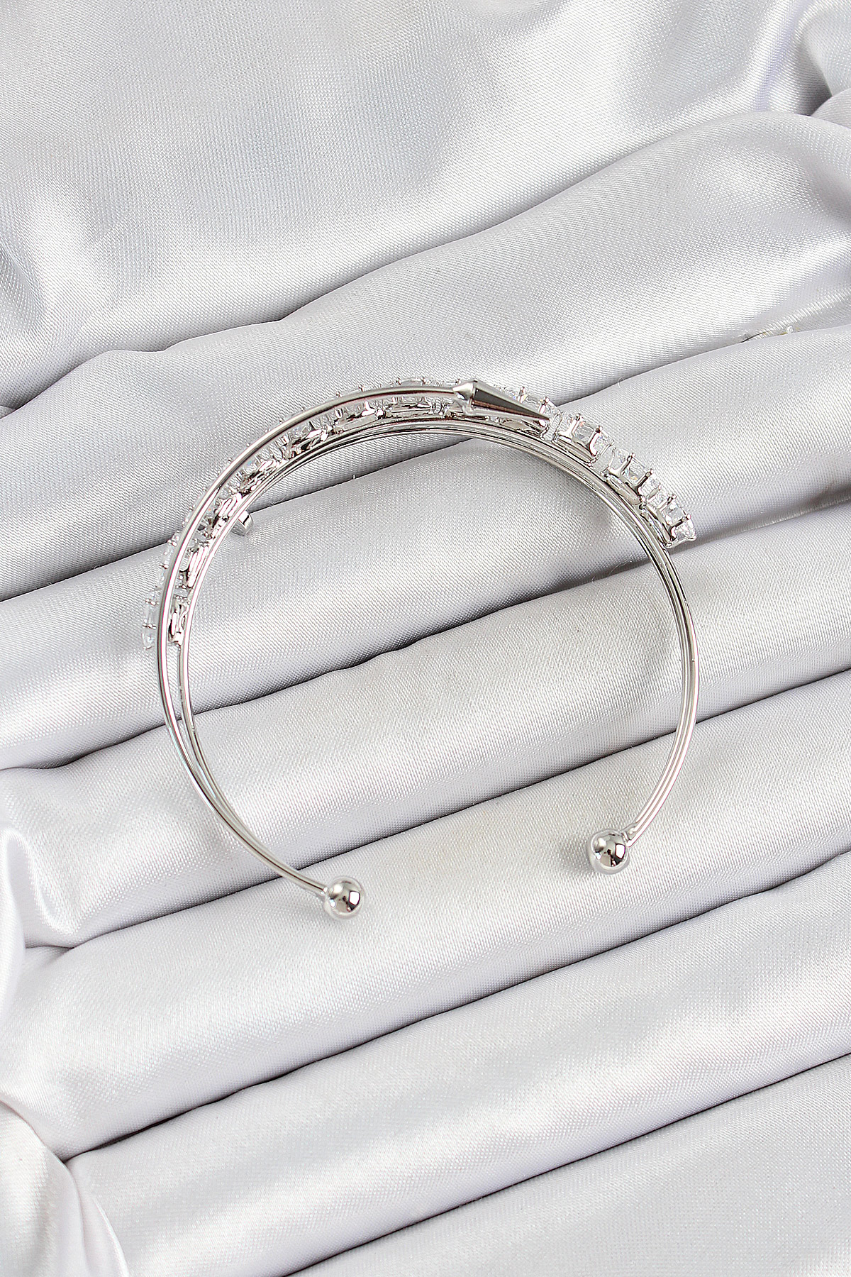 Tegan Pirinç Gümüş Renk Arpa Zirkon Taşlı Kadın Bileklik TG27BB7064