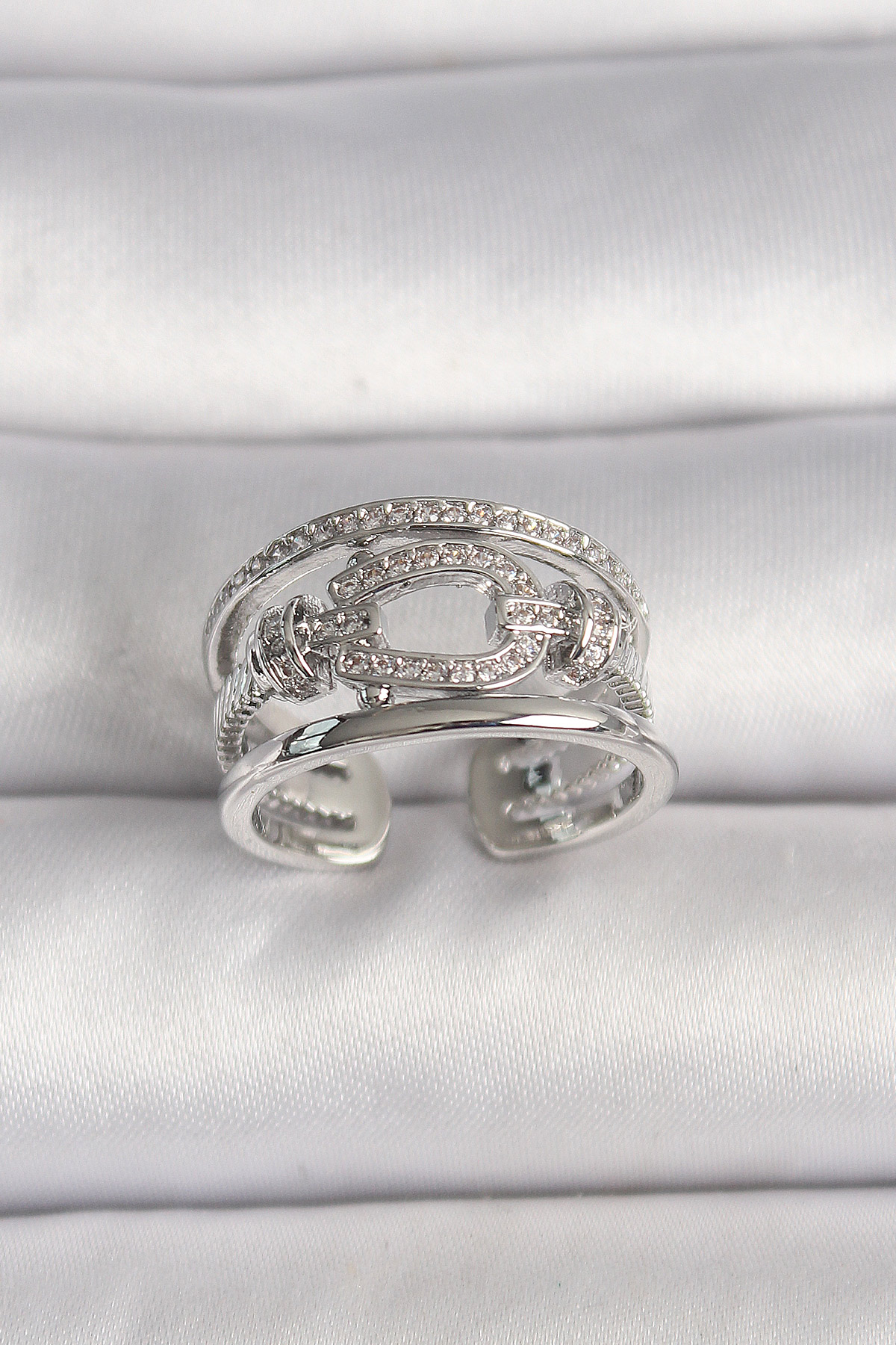 Tegan Pirinç Gümüş Renk Ayarlanabilir Zirkon Taşlı Gemici Düğüm Model Kadın Yüzük TG27BYK3584