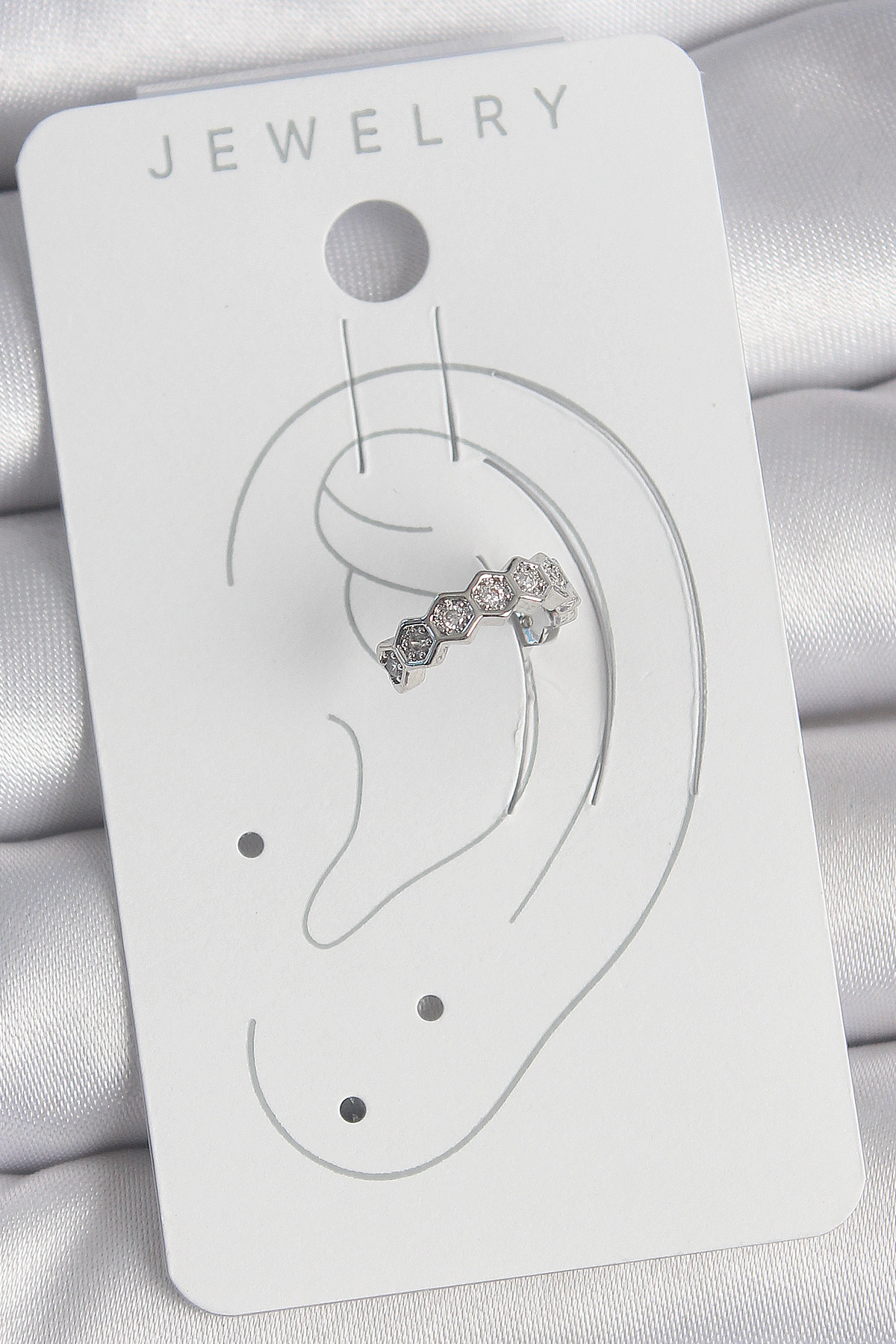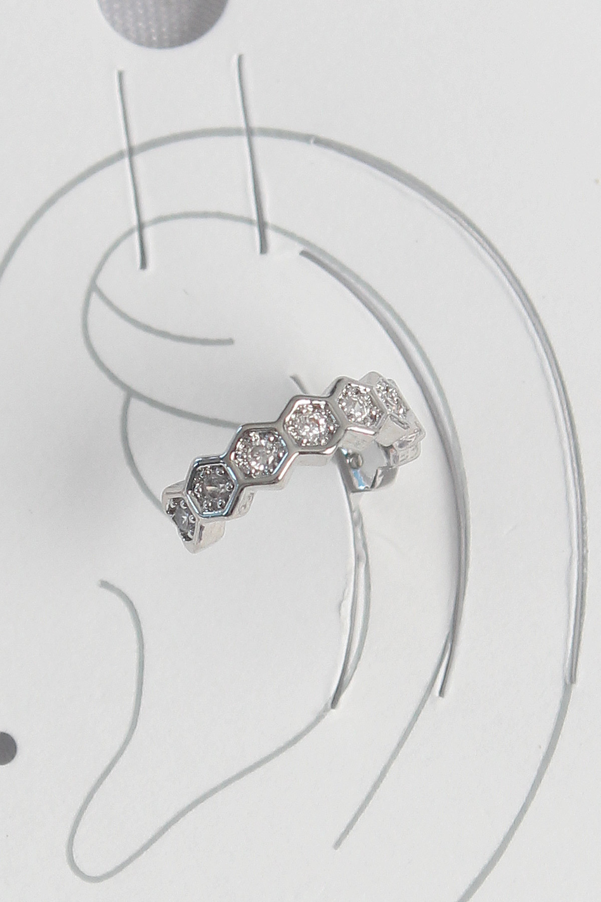 Tegan Pirinç Gümüş Renk Bal Peteği Model Zirkon Taşlı Kadın Kıkırdak Küpe TG27BKP10568