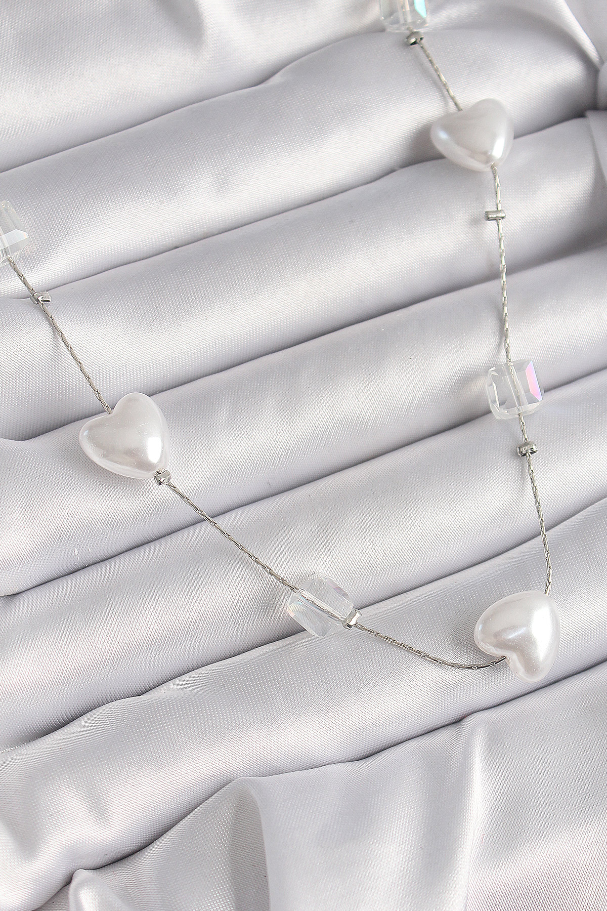 Tegan Pirinç Gümüş Renk Beyaz İnci Kalp Model Kadın Kolye TG27BKO9624