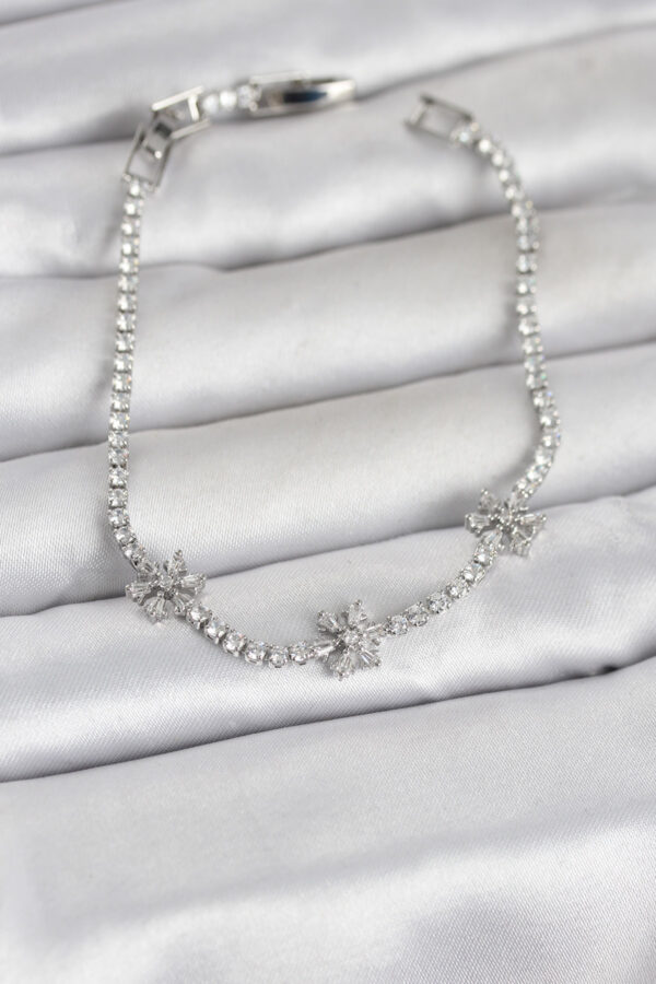 Tegan Pirinç Gümüş Renk Çiçek Model Zirkon Taşlı Su Yolu Kadın Bileklik TG27BB8380
