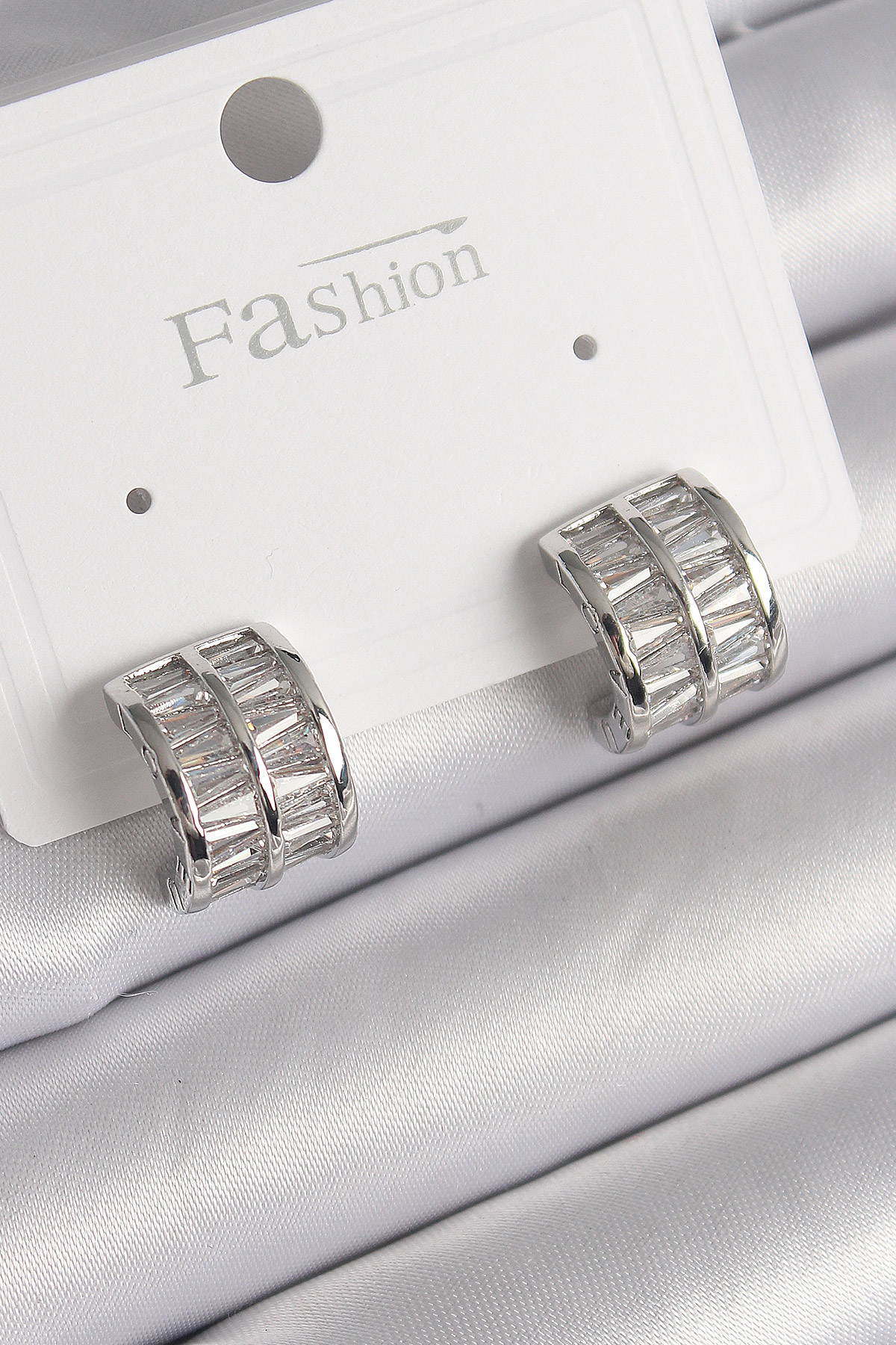 Tegan Pirinç Gümüş Renk Çift Sıra Zirkon Taşlı Kadın Küpe TG27BKP9755