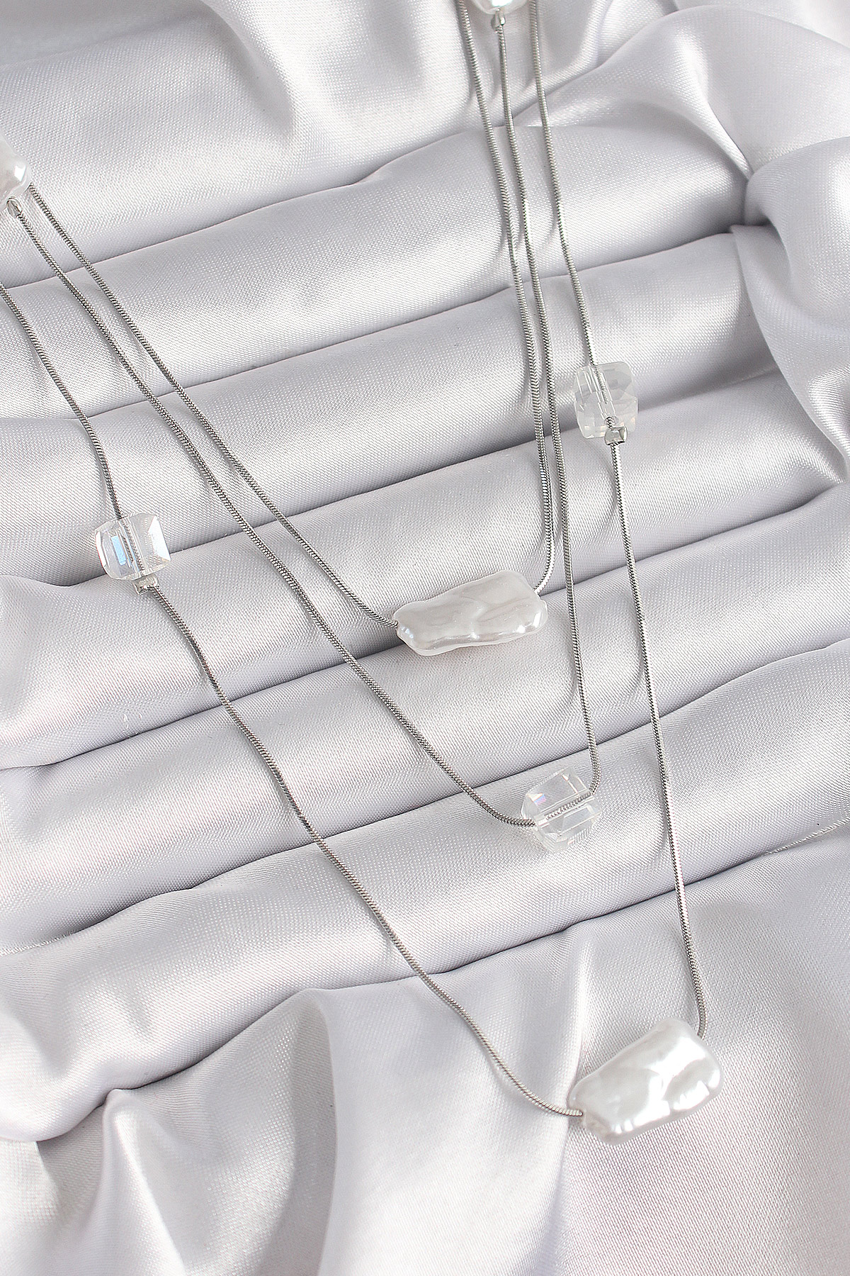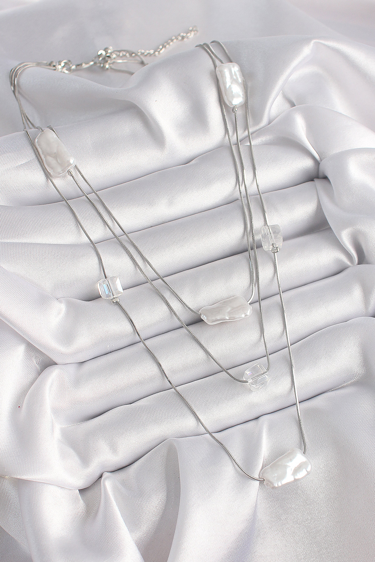 Tegan Pirinç Gümüş Renk Ezme İnci Model Çoklu Kadın Kolye TG27BKO9620