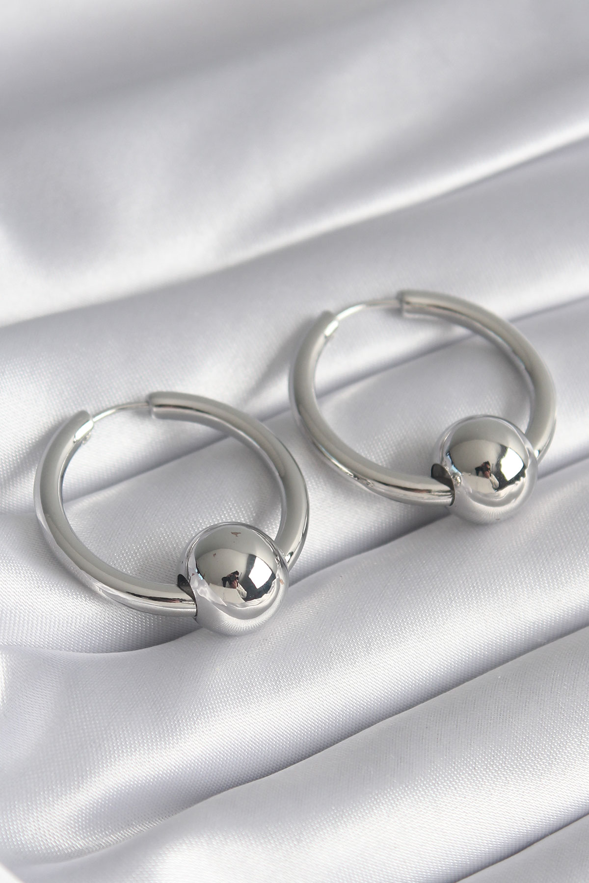 Tegan Pirinç Gümüş Renk Halka Top Model Kadın Küpe TG27BKP8500