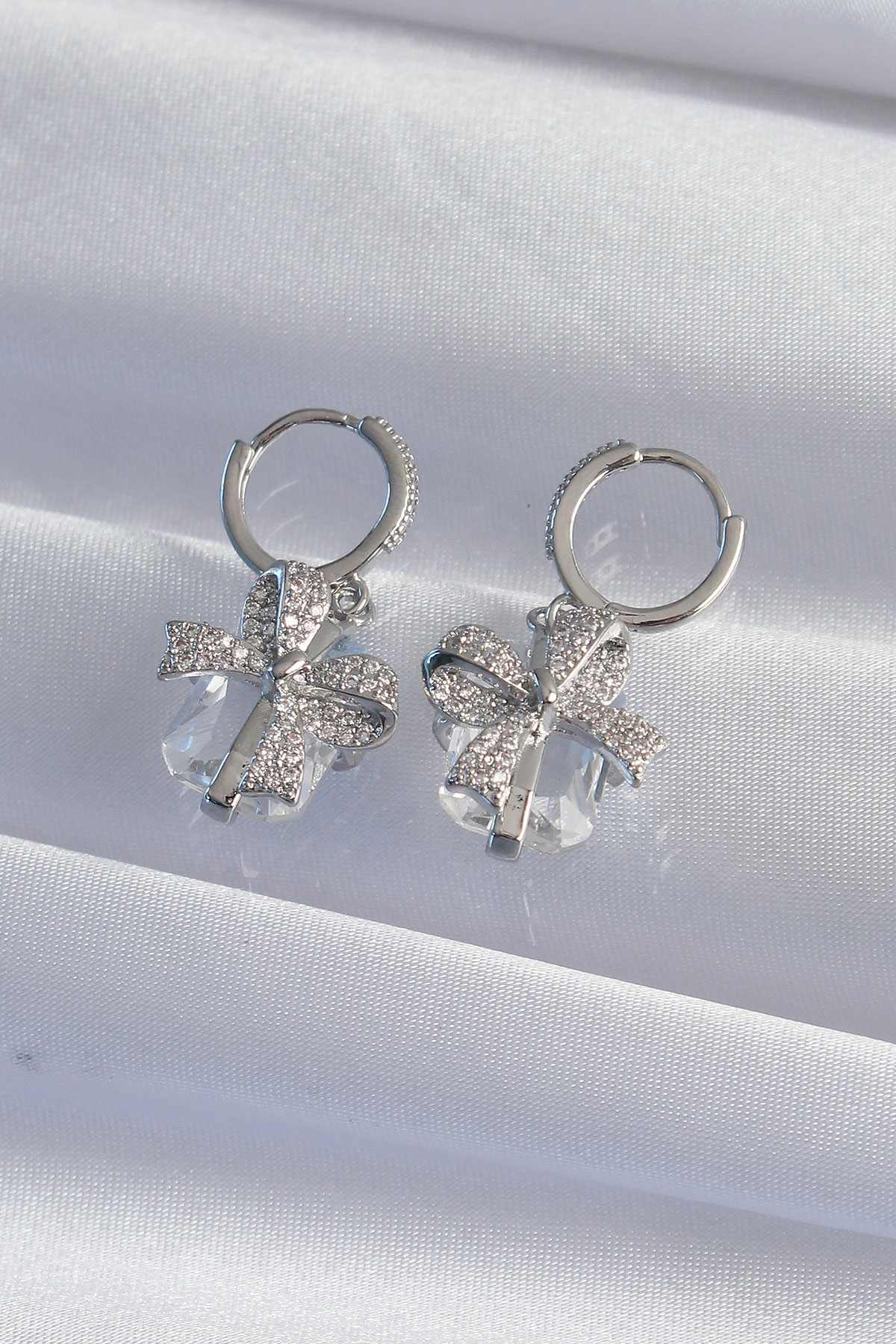 Tegan Pirinç Gümüş Renk İri Zirkon Taşlı Fiyonk Model Halka Küpe TG27BKP9312