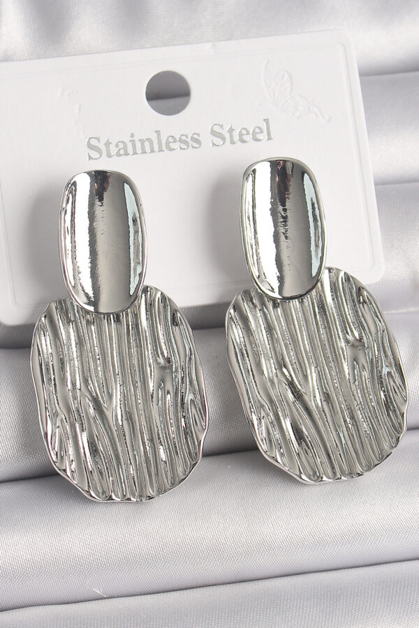 Tegan Pirinç Gümüş Renk İşlemeli Kare Plaka Model Kadın Küpe TG27BKP10226