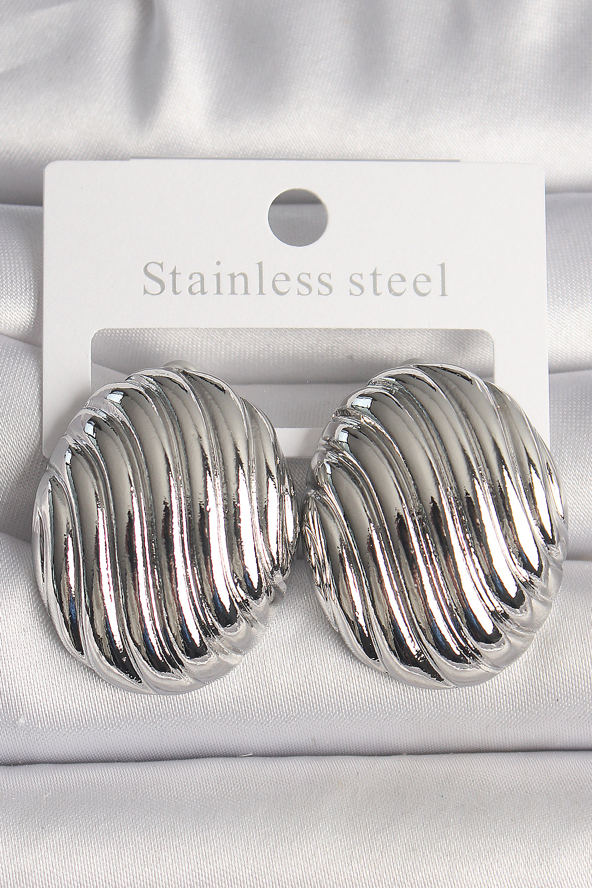 Tegan Pirinç Gümüş Renk İşlemeli Oval Model Kadın Küpe TG27BKP10150