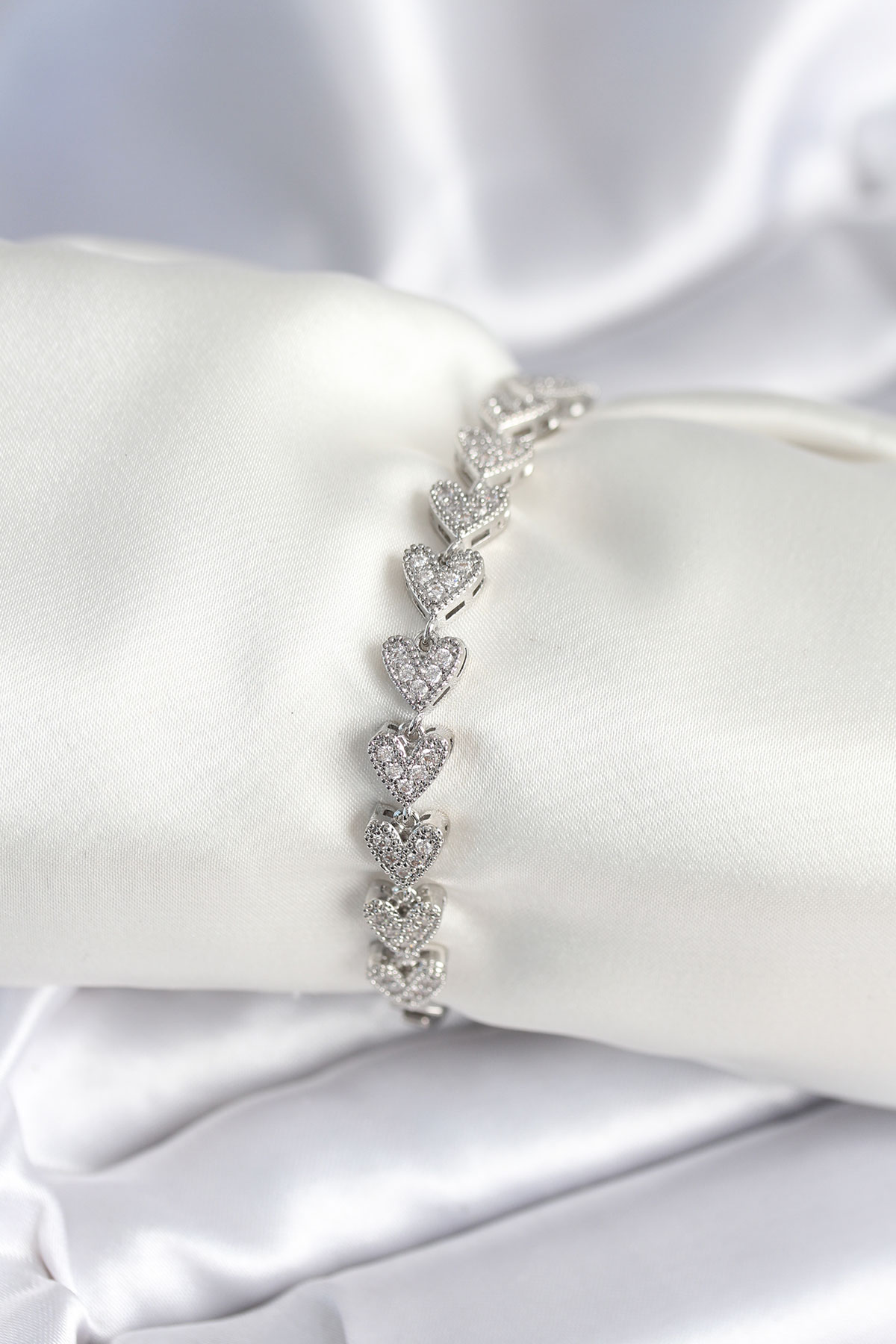 Tegan Pirinç Gümüş Renk Kalp Model Kadın Bileklik TG27BB7981
