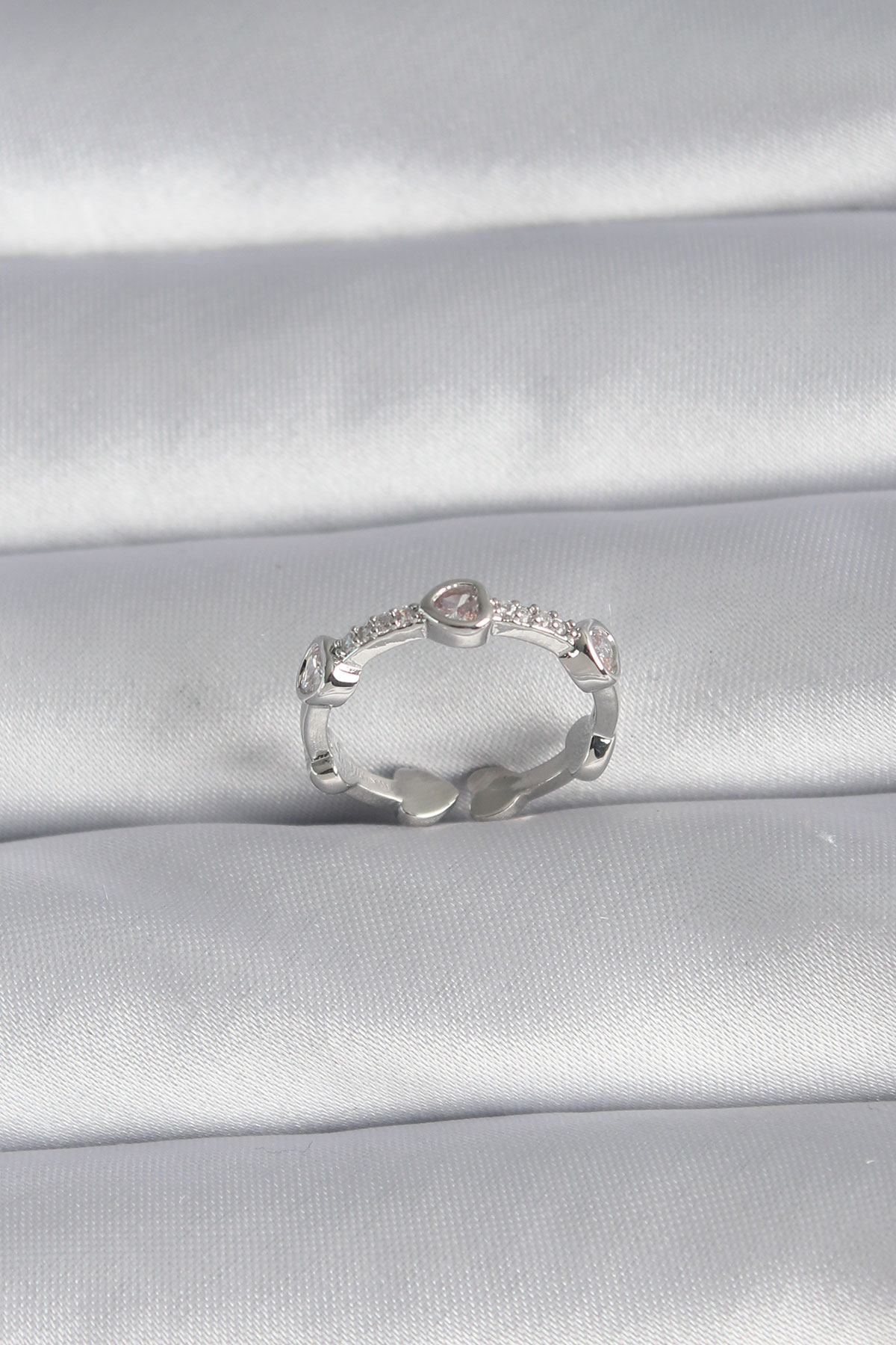 Tegan Pirinç Gümüş Renk Kalp Model Zirkon Taş Detay Kadın Yüzük TG27BYK3005