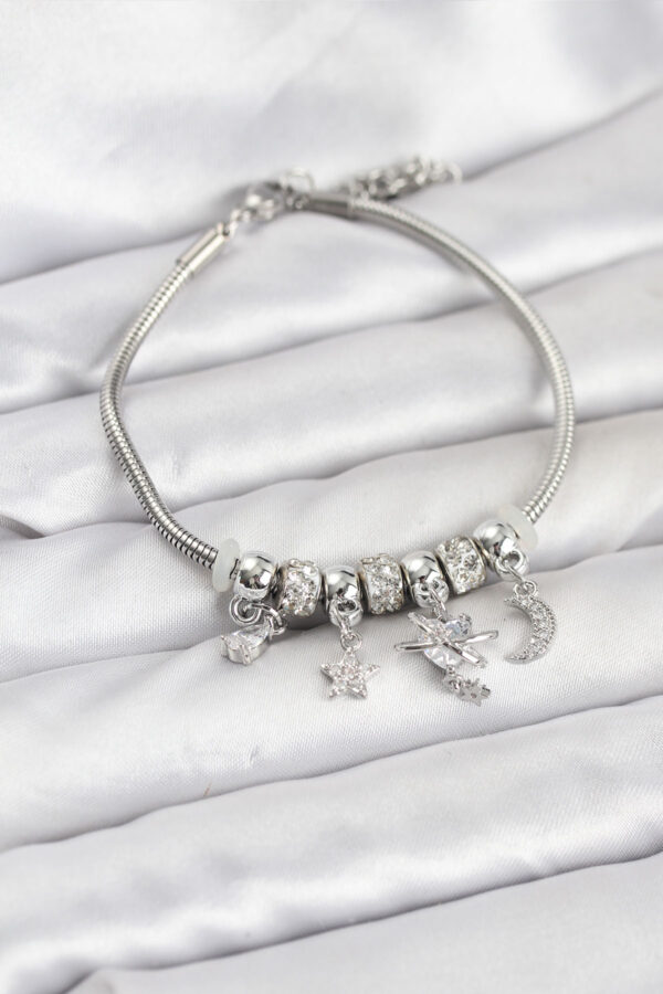 Tegan Pirinç Gümüş Renk Kalpli Model Charmlı Kadın Bileklik TG27BB8176