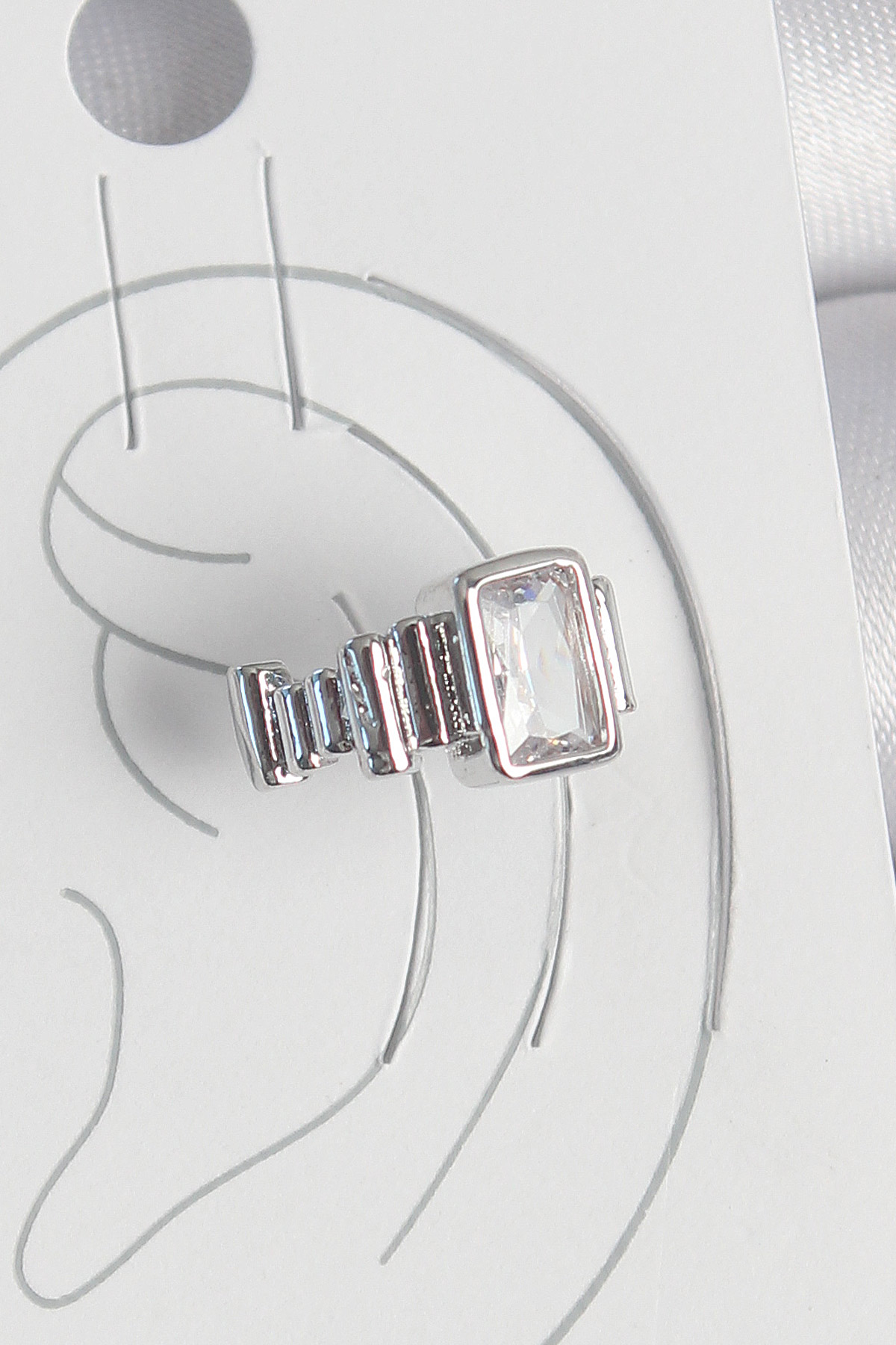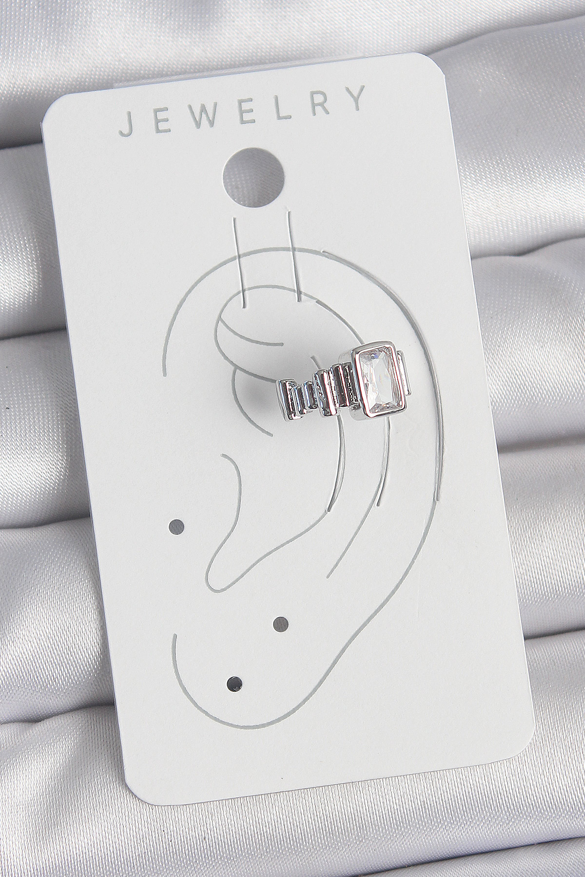 Tegan Pirinç Gümüş Renk Kare Zirkon Taşlı Kadın Kıkırdak Model Küpe TG27BKP10560