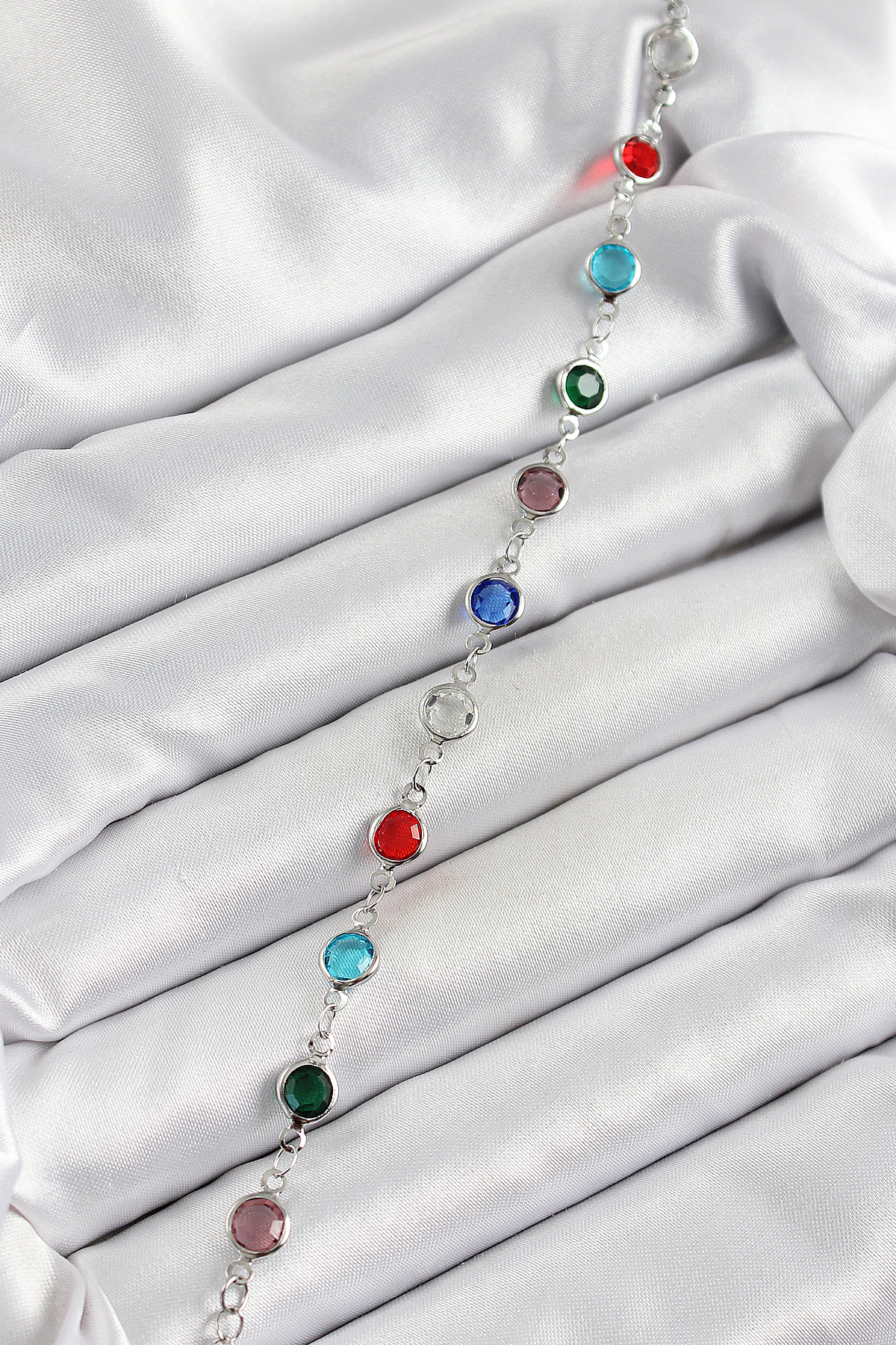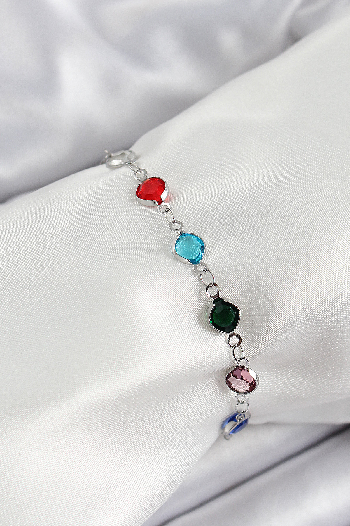 Tegan Pirinç Gümüş Renk Karışık Renk Zirkon Taşlı Kadın Bileklik TG27BB7046