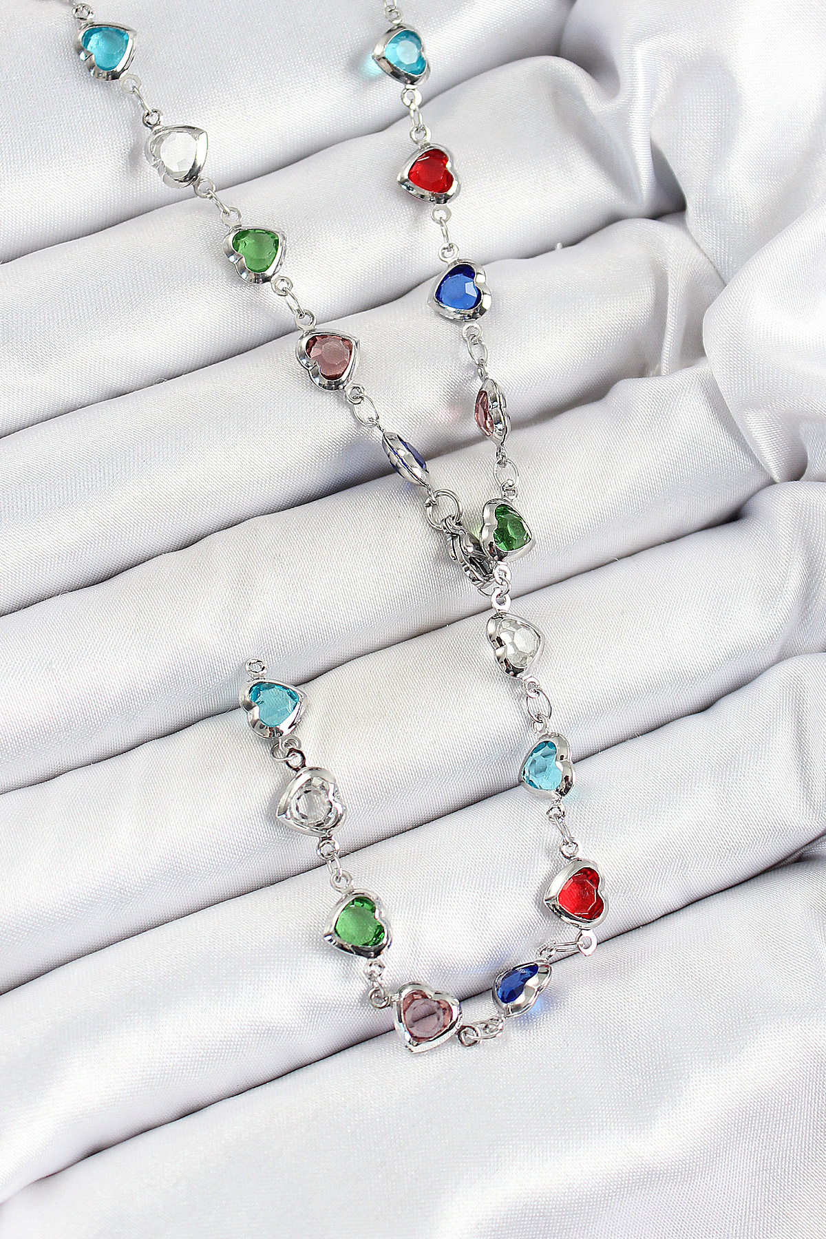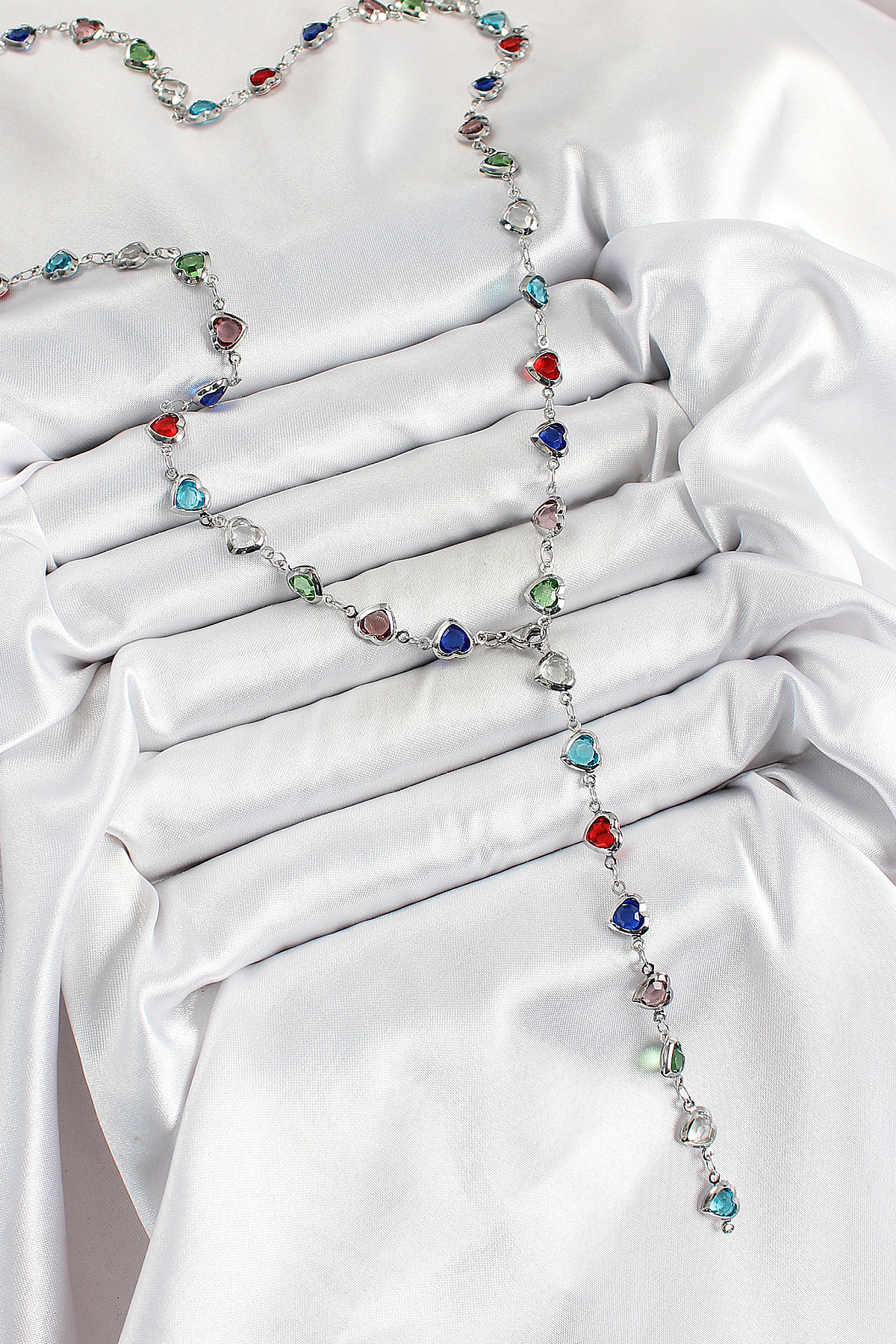 Tegan Pirinç Gümüş Renk Karışık Renk Zirkon Taşlı Kalpli Y Kadın Kolye TG27BKO10302