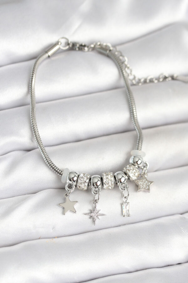 Tegan Pirinç Gümüş Renk Kutup Yıldızı Charmlı Kadın Bileklik TG27BB7992