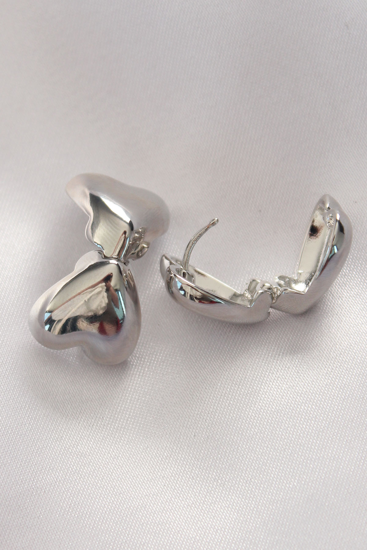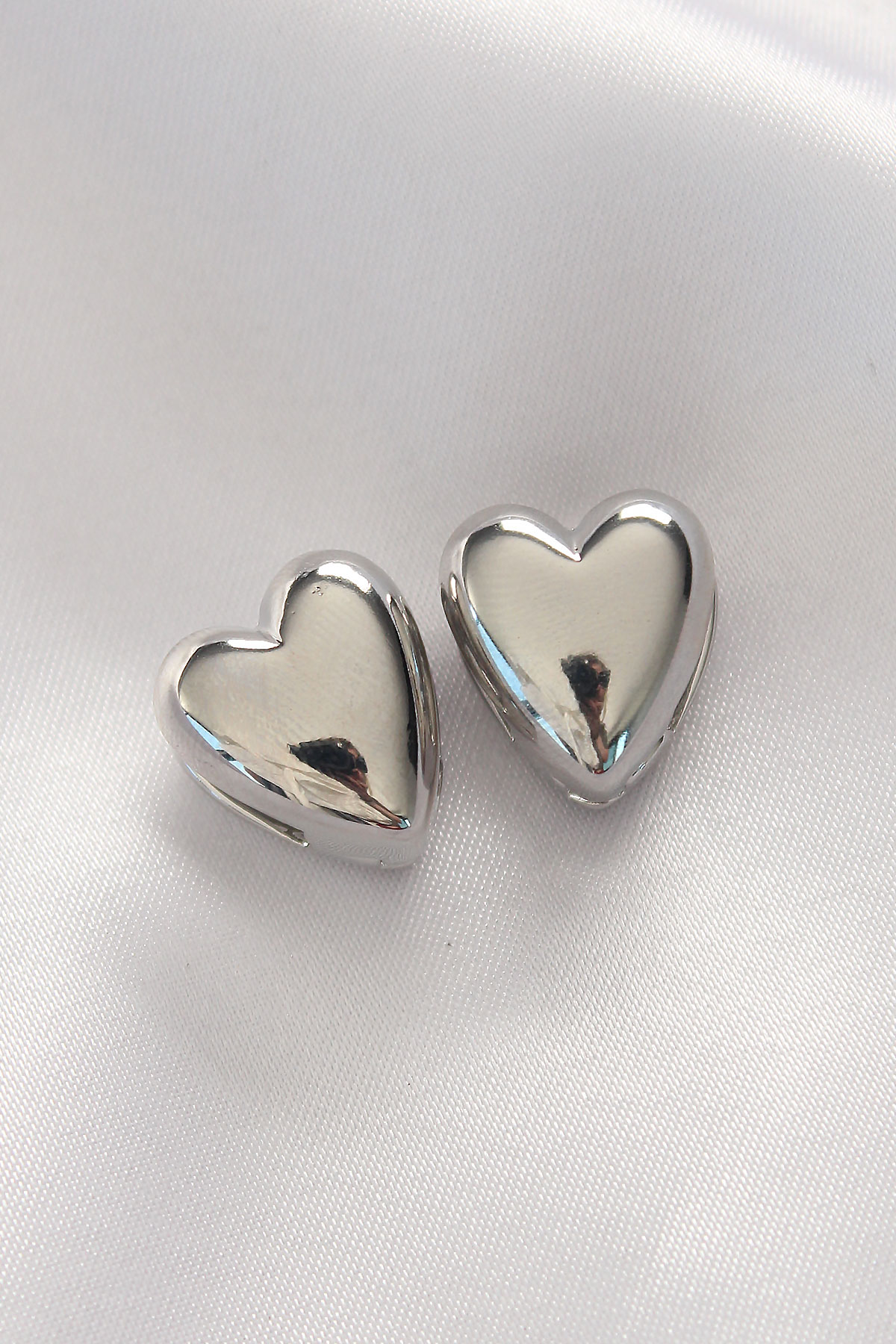Tegan Pirinç Gümüş Renk Minimal Bombeli Kalp Küpe TG27BKP8969