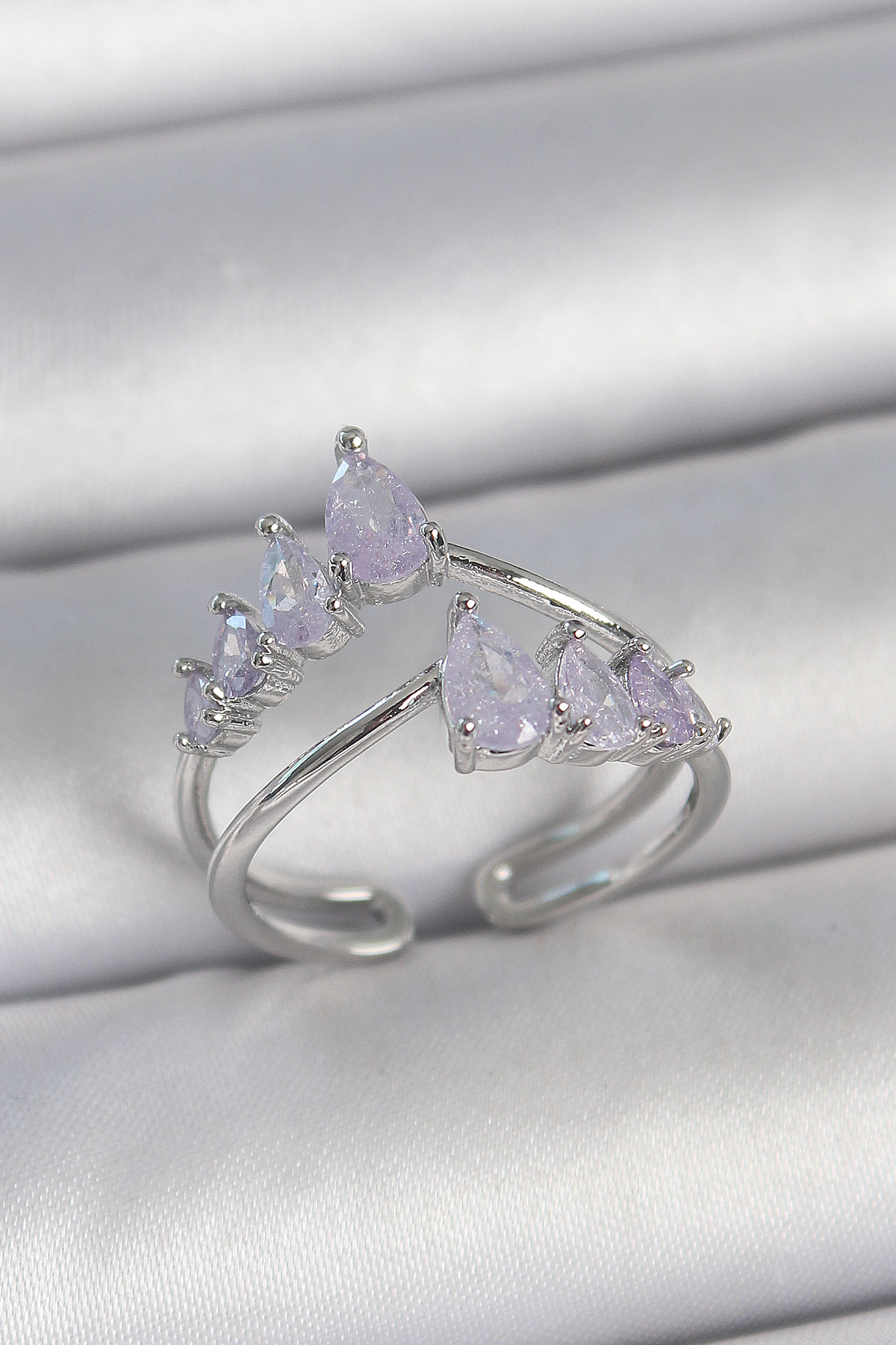 Tegan Pirinç Gümüş Renk Mor Damla Zirkon Taşlı Taç Model Kadın Yüzük TG27BYK3714