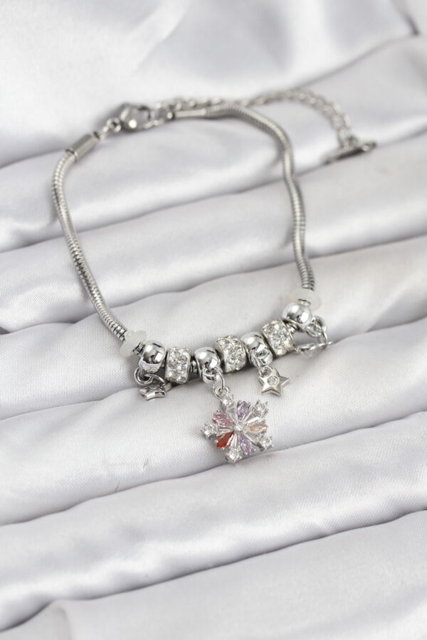 Tegan Pirinç Gümüş Renk Renkli Yıldız Charmlı Kadın Bileklik TG27BB8186