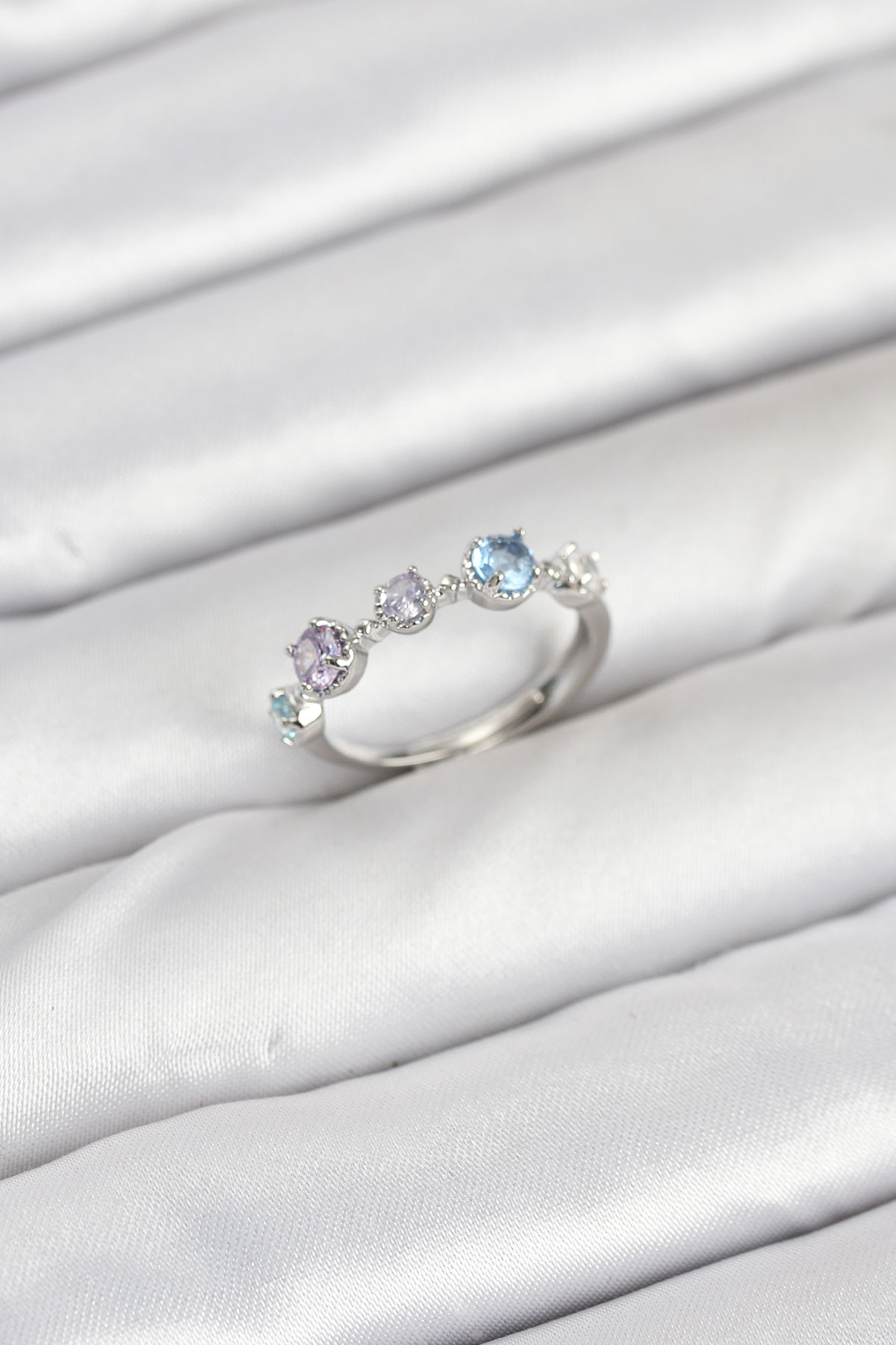 Tegan Pirinç Gümüş Renk Renkli Zirkon Taşlı Kadın Yüzük TG27BYK3885