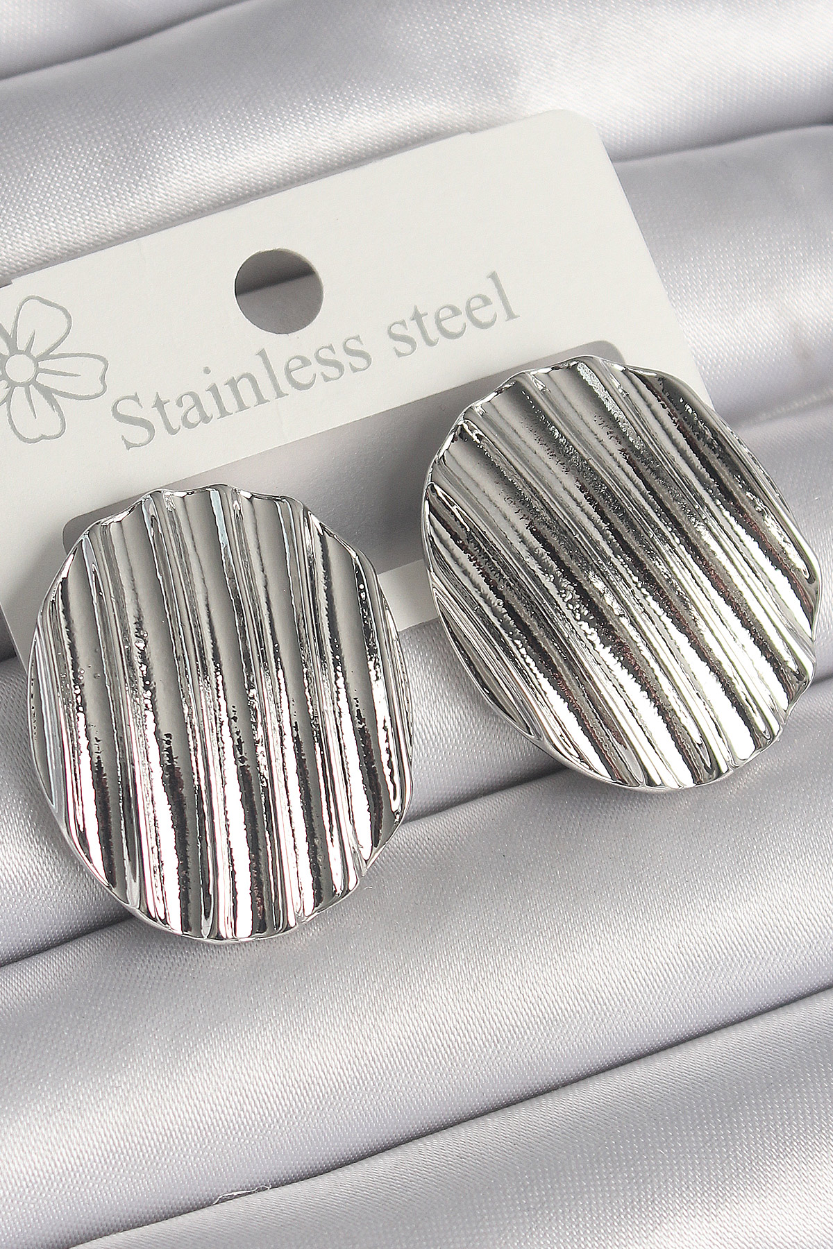 Tegan Pirinç Gümüş Renk Sallantı İşlemeli Daire Plaka Model Kadın Küpe TG27BKP10229