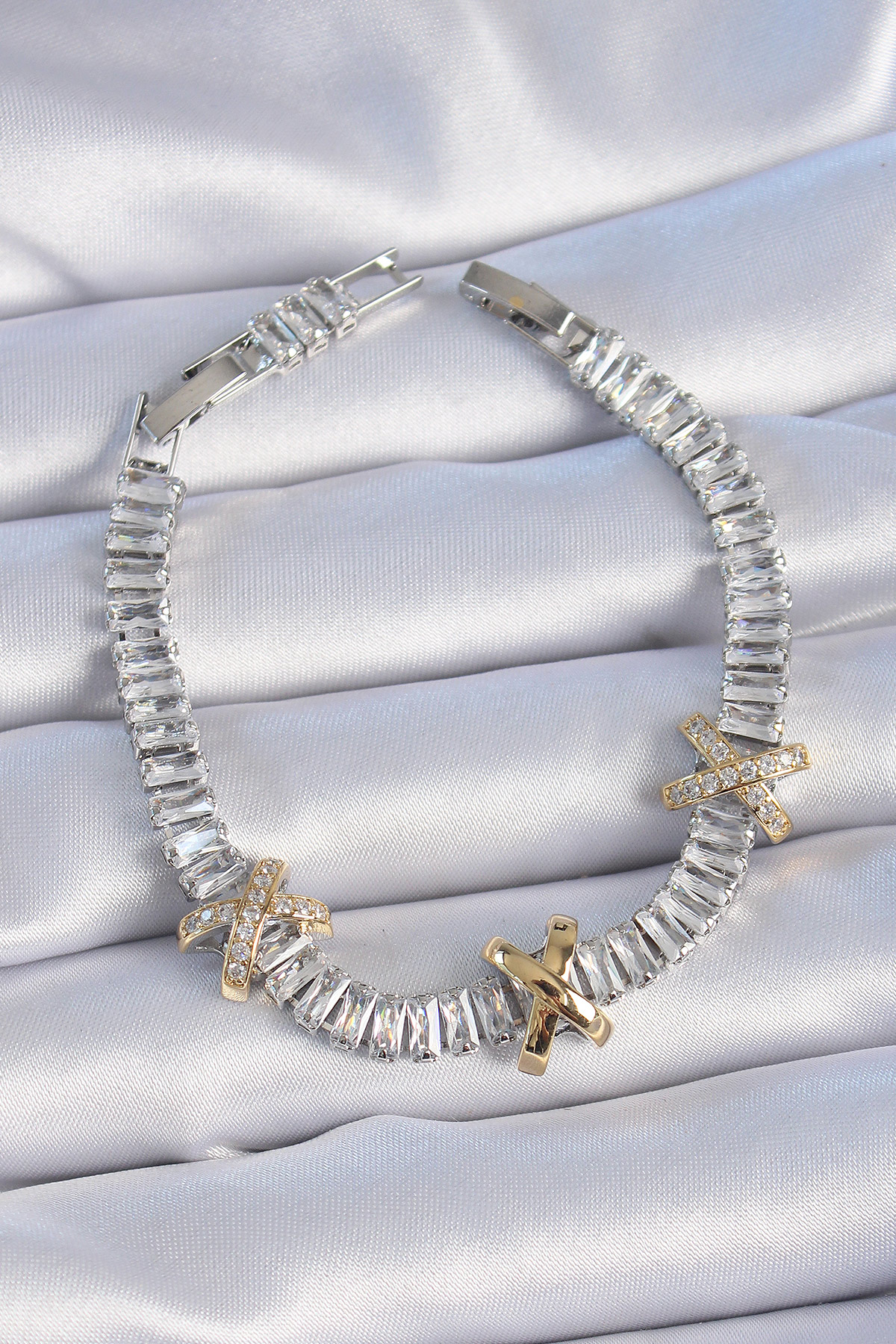 Tegan Pirinç Gümüş Renk Taşlı Su Yolu Model VİP Seri Kadın Bileklik TG27BB6402