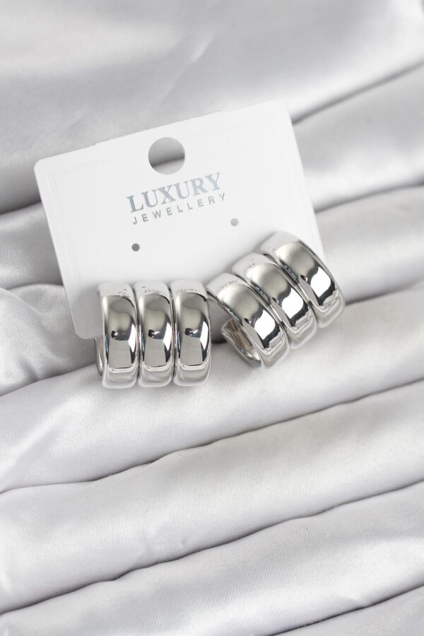 Tegan Pirinç Gümüş Renk Üçlü Görünüm Kadın Küpe TG27BKP11756